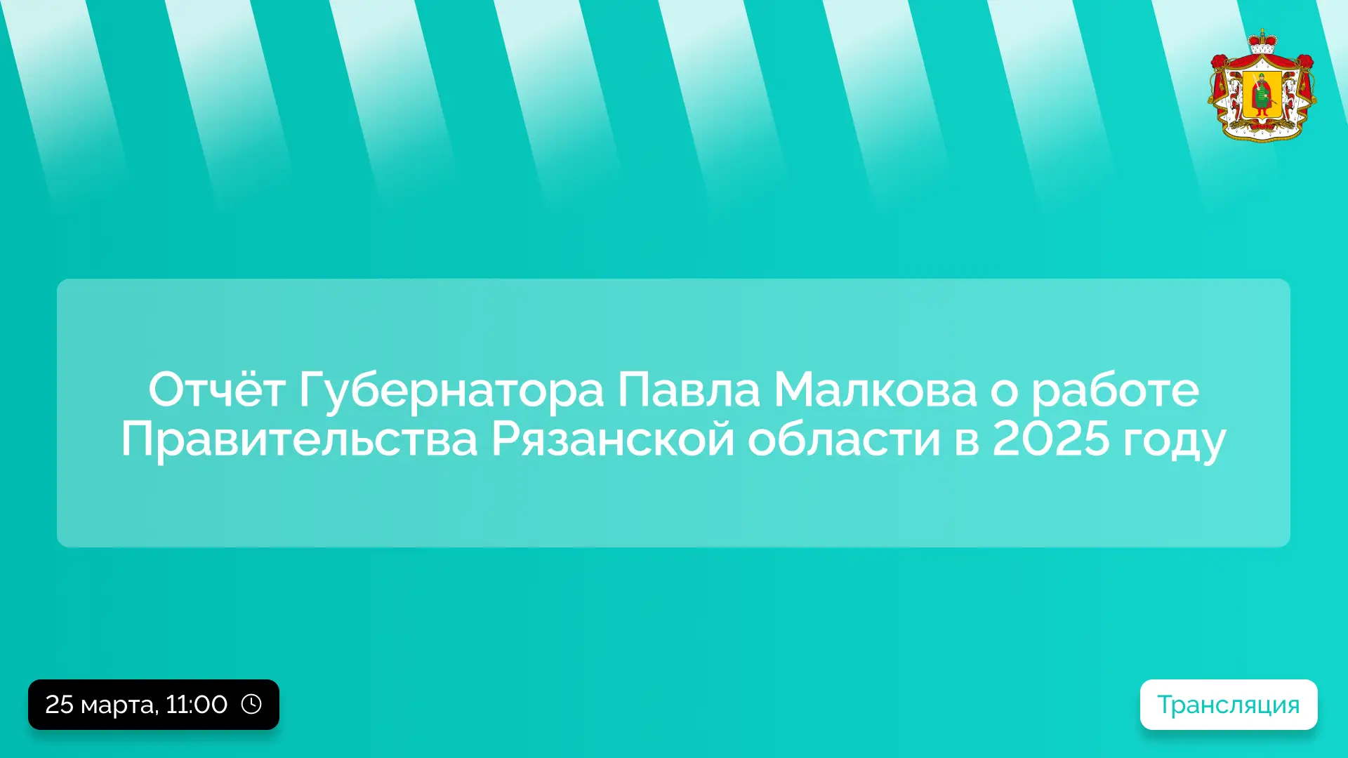 25 марта в 11:00 губернатор Павел Малков выступит на заседании областной Думы с отчётным докладом о результатах работы правительства Рязанской области в 2025 году.