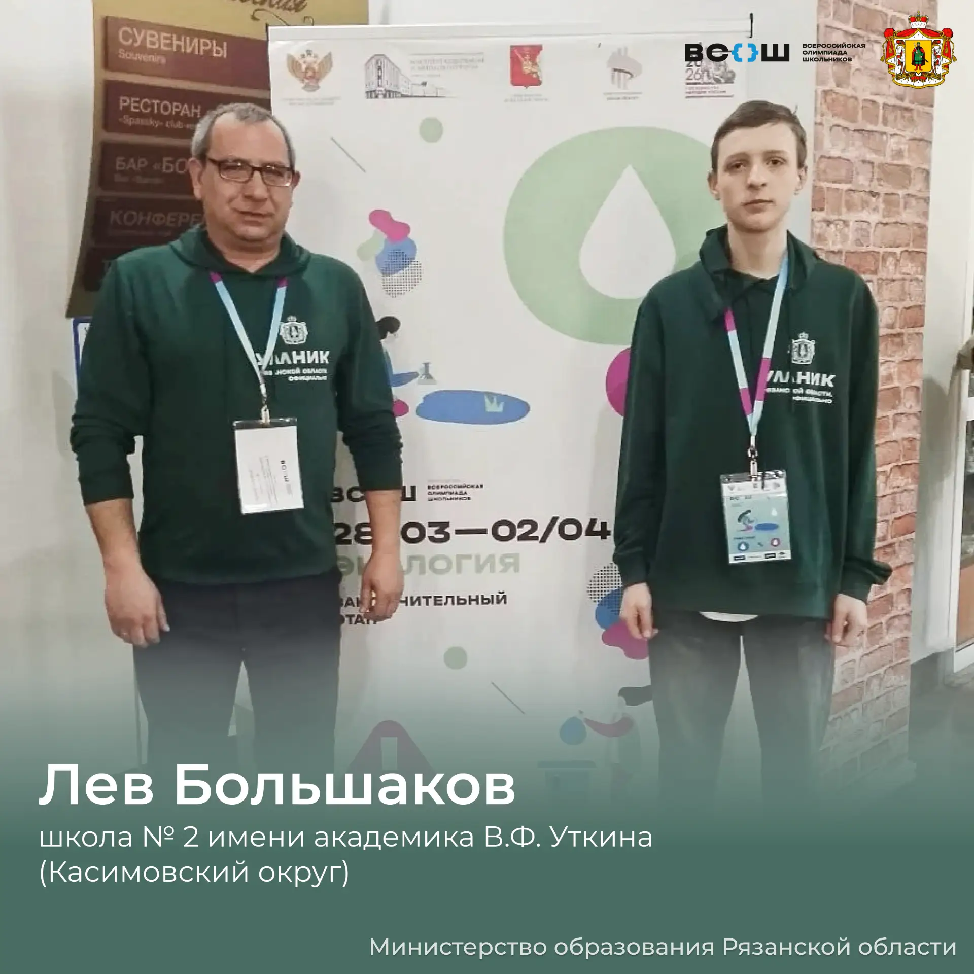 💫 Лев Большаков, ученик 9 класса школы № 2 имени академика В.Ф. Уткина из Касимовского округа, принял участие во Всероссийской олимпиаде школьников по экологии.