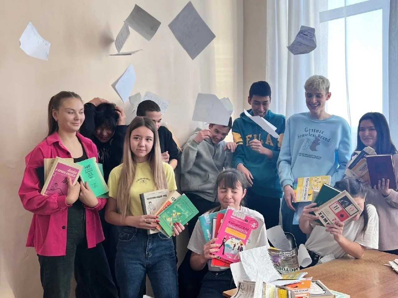 — старшеклассники помогают грузить килограммы макулатуры;
