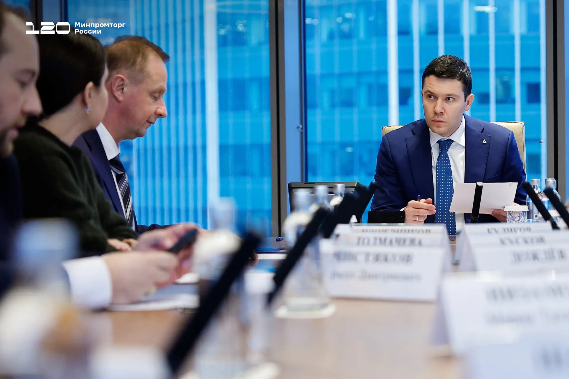 Министр Антон Алиханов провел совещание с отечественными производителями товаров для детей и главой Ассоциации «АИДТ» Антониной Цицулиной.