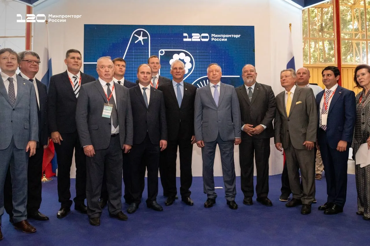 🤝 Центром российского павильона стал стенд Минпромторга России. На нем были представлены 22 компании из различных отраслей: компрессорное, металлообрабатывающее, прачечное, радиоэлектронное, лифтовое оборудование, станкоинструмент, инжиниринговые услуги, электродвигатели и лекарственные препараты.
