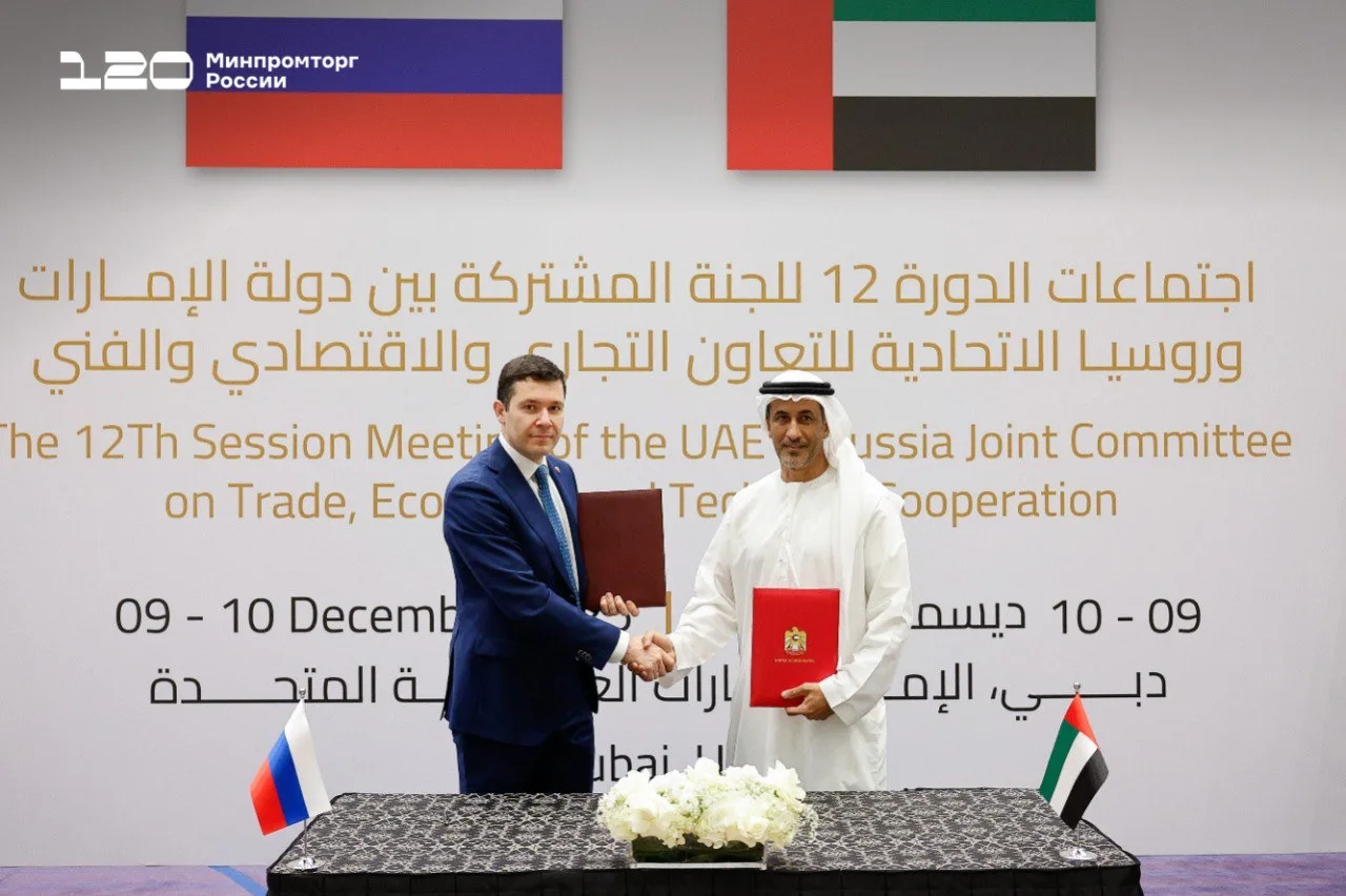 Глава Минпромторга России Антон Алиханов и Министр экономики и туризма ОАЭ Абдулла бин Тук Аль-Марри провели XII заседание Межправительственной комиссии по торгово-экономическому и техническому сотрудничеству.