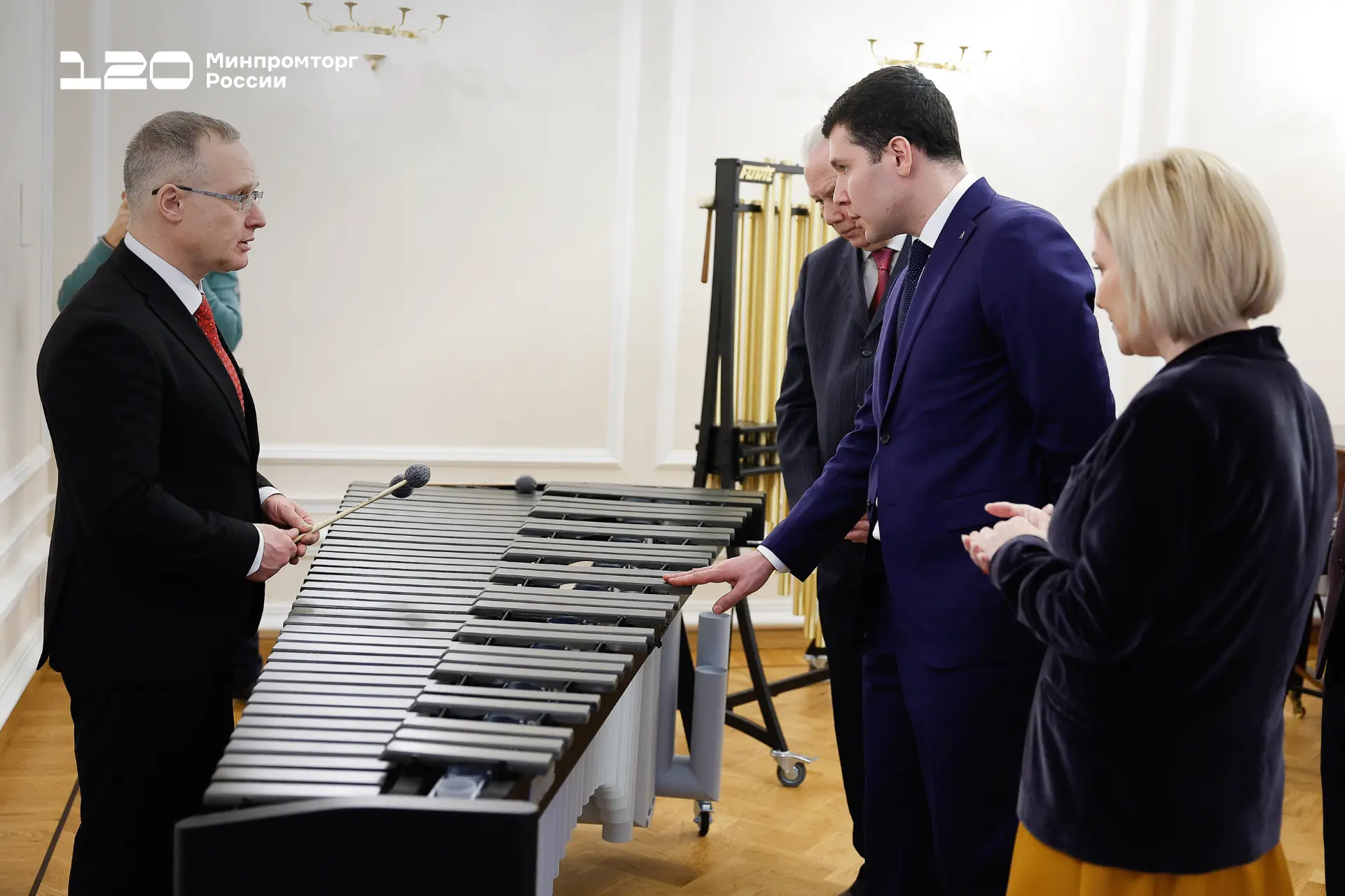 Глава Минпромторга России Антон Алиханов и Министр культуры Российской Федерации Ольга Любимова обсудили развитие производства музыкальных инструментов и осмотрели выставку отечественных продукции.