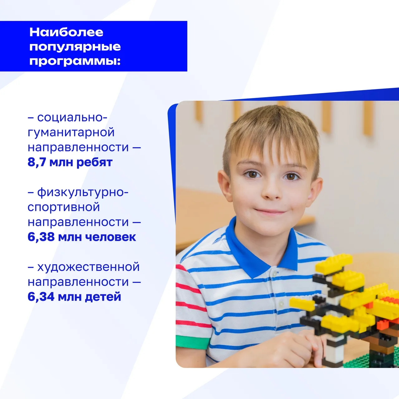 Министр просвещения РФ Сергей Кравцов отметил, что система допобразования играет важную роль в развитии каждого ребёнка. Ведомство регулярно проводит соответствующие мониторинги и оказывает адресную поддержку субъектам РФ в этом вопросе.
