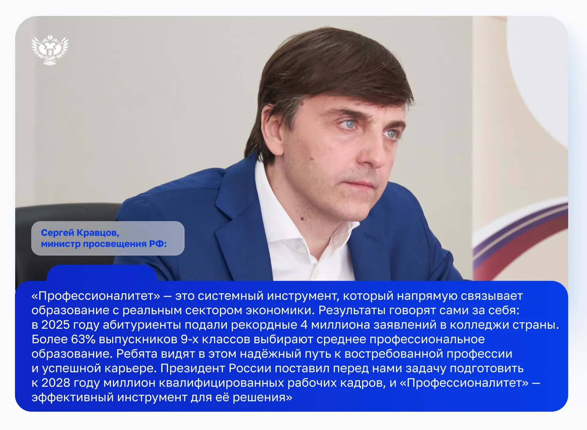 📣 Сергей Кравцов: Все показатели национальных проектов в части сферы образования достигнуты в полном объёме
