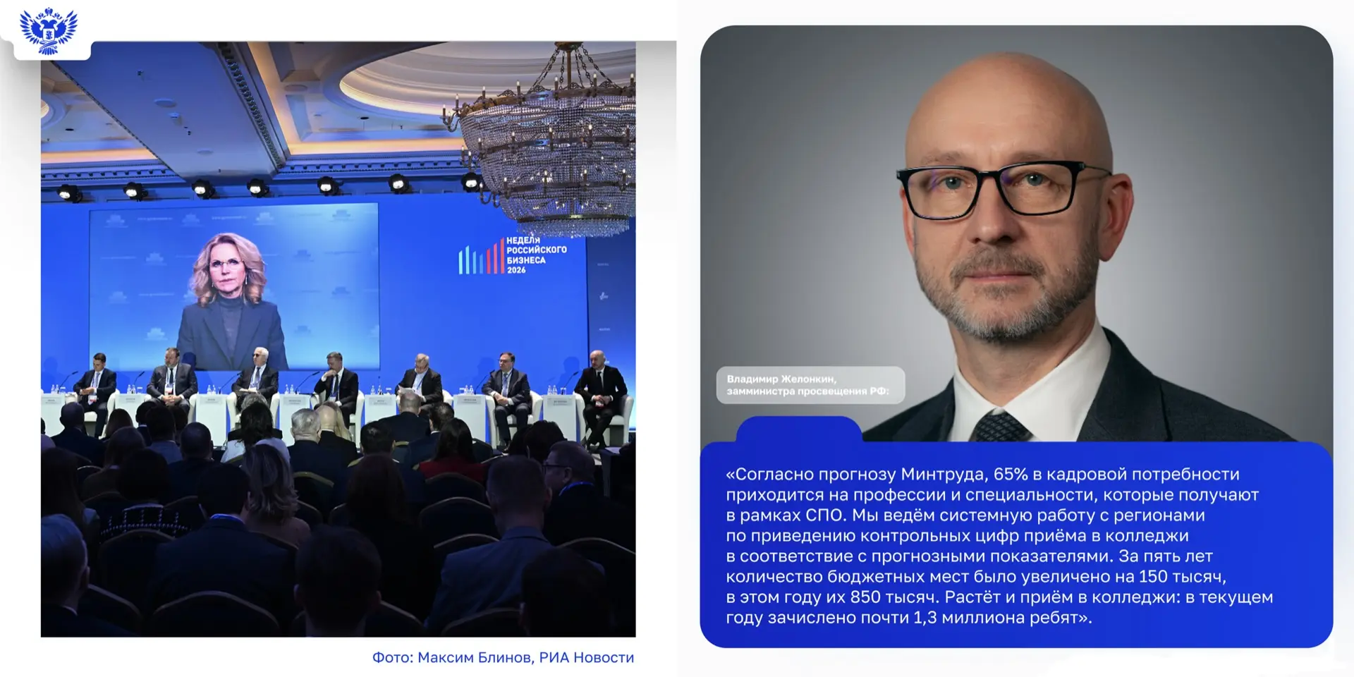 🔹 Впервые был реализован эксперимент по доступности СПО, он был продлён до 2029 года. В 2026 году участвуют 12 регионов. Принят также федеральный закон, согласно которому выпускники 9-х классов имеют право на бесплатное профобучение по программам рабочих и служащих с возможностью продолжать школьную программу.