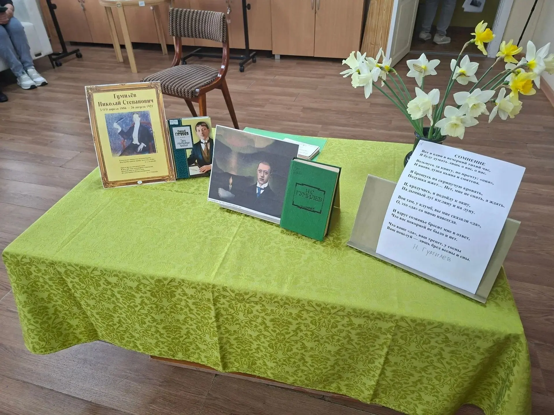 15 апреля 2026 года в стенах Лермонтовского комплексного центра социального обслуживания населения для клиентов социально-оздоровительного отделения прошёл особенный литературно-поэтический час, посвящённый 140-летию со дня рождения Николая Степановича Гумилёва.