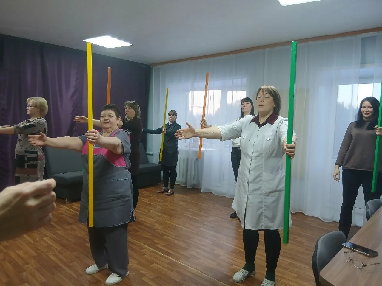 «Зарядка необходима для здоровья, поэтому ее нужно делать каждый день! Эти простые, но эффективные упражнения помогают проснуться, зарядиться энергией и настроиться на продуктивный рабочий день», — поделилась ведущая зарядки, старшая медицинская сестра центра Ольга Бурдинская.