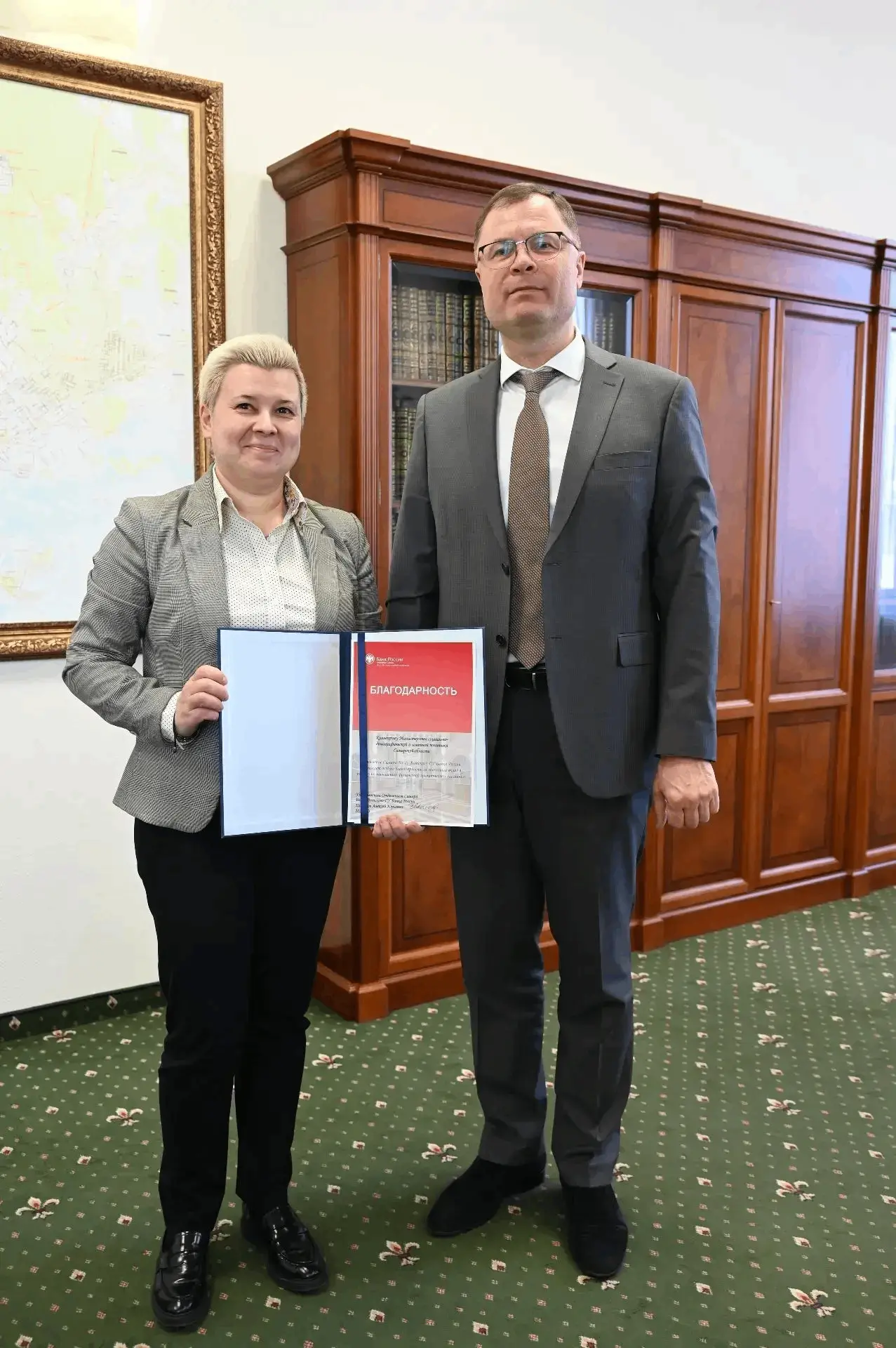За значимый вклад в работу по повышению финансовой грамотности населения управляющий отделением по Самарской области Волго-Вятского ГУ Банка России Алексей Колосков отметил коллектив нашего министерства благодарностью — на днях состоялось торжественное вручение🏅