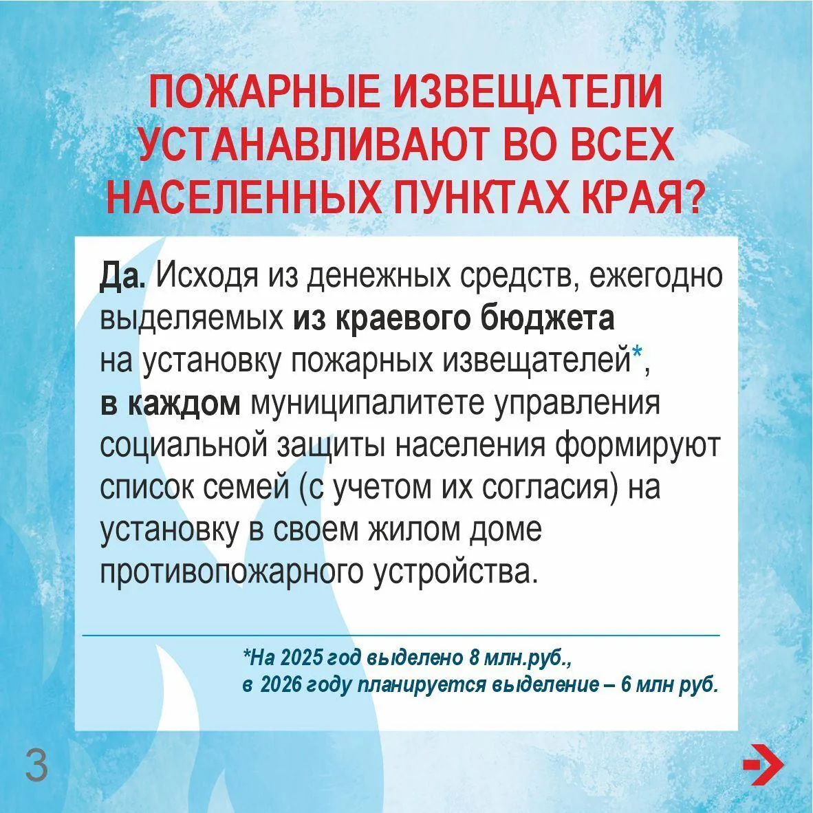 🚒 С 2018 года в регионе за счет средств краевого бюджета ведется установка пожарных извещателей датчиков-измерителей и сигнализаторов угарного газа.