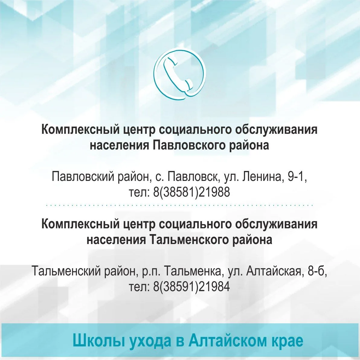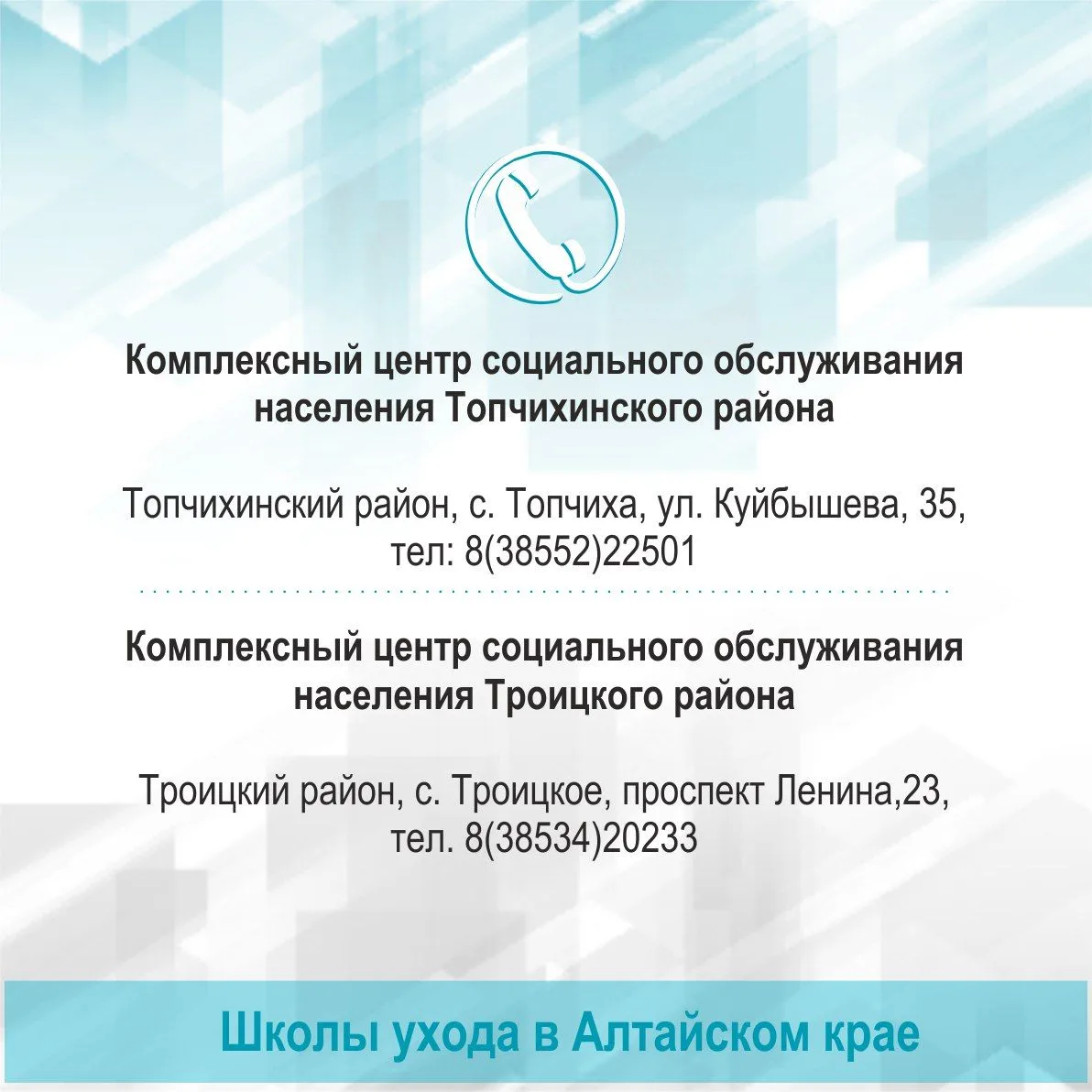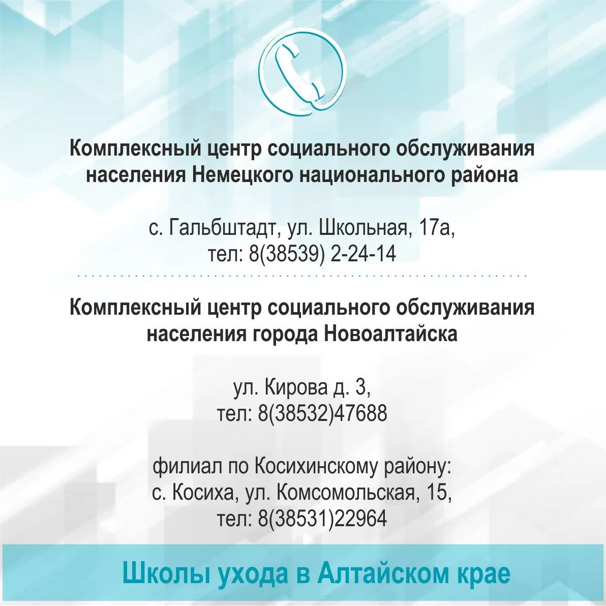 ☝️Контакты Школ ухода за пожилыми людьми и инвалидами в Алтайском крае