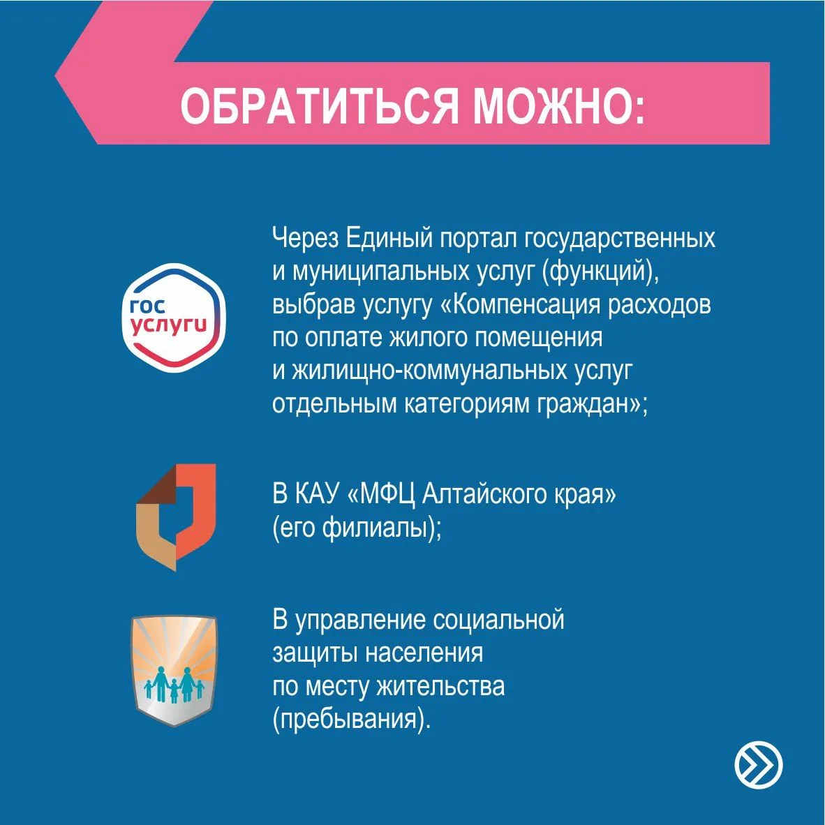 👆Эти и еще 15 государственных массовых социально значимых услуг, предоставляемых органами социальной защиты Алтайского края, доступны в электронном виде.