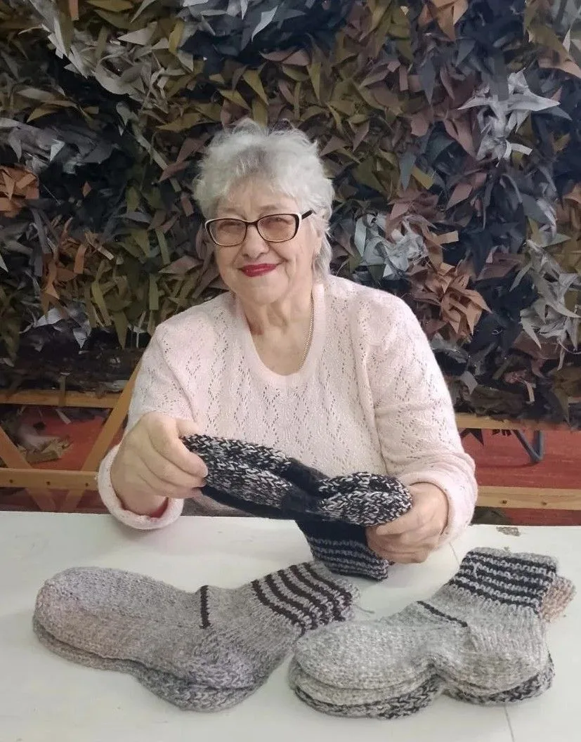 🧶Ветераны районного совета высоко оценивают вклад Надежды Вельбой, которая приготовила воинам теплый новогодний подарок — связала 110 пар шерстяных носков. За два года Надежда изготовила 250 пар утепленных верхонок, 120 трусов, 150 вещьмешков, 70 органайзеров для кроватей и 53 нашлемника. Ее самоотверженный труд вызывает искреннюю благодарность.
