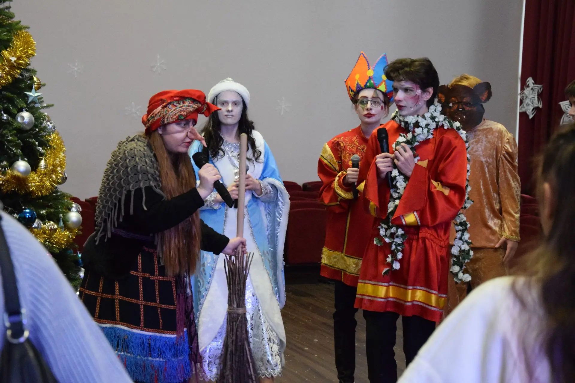 Ребятам на сцене театра показали сказку «Старый год против». После представления малыши водили хоровод и играли с Дедом Морозом, Снегурочкой и космонавтами. А ребята постарше пошли на дискотеку с заводными конкурсами.
