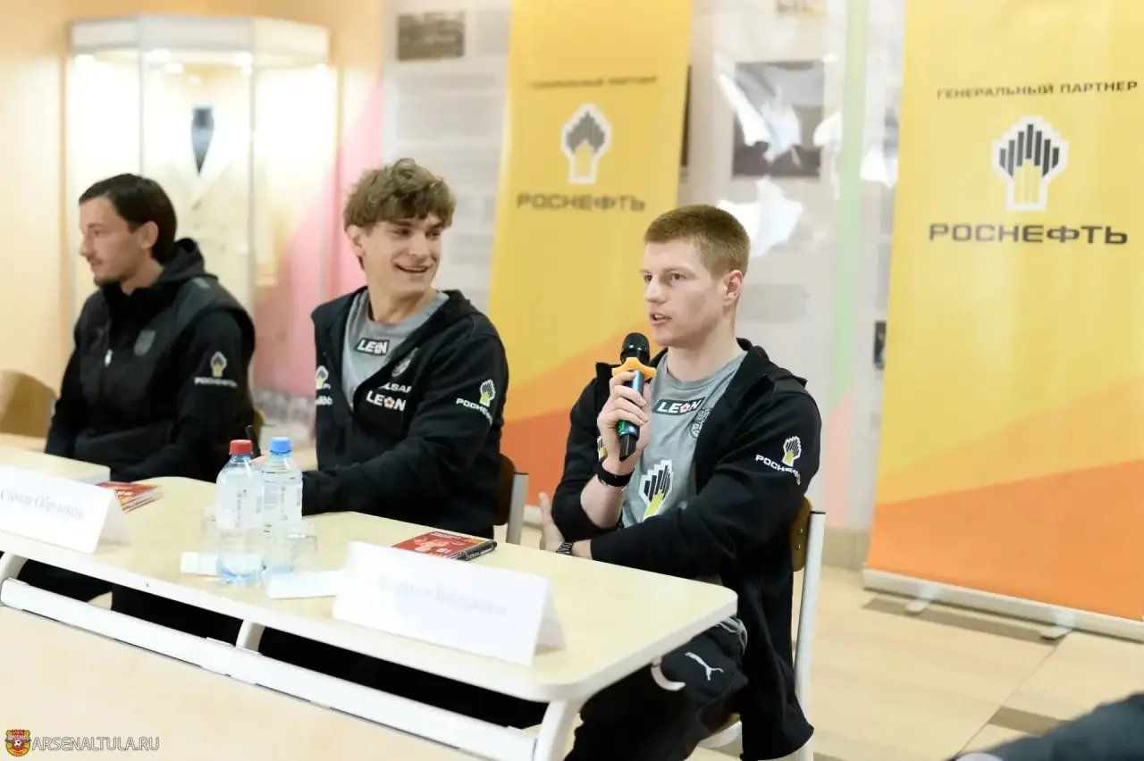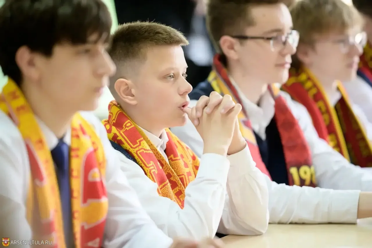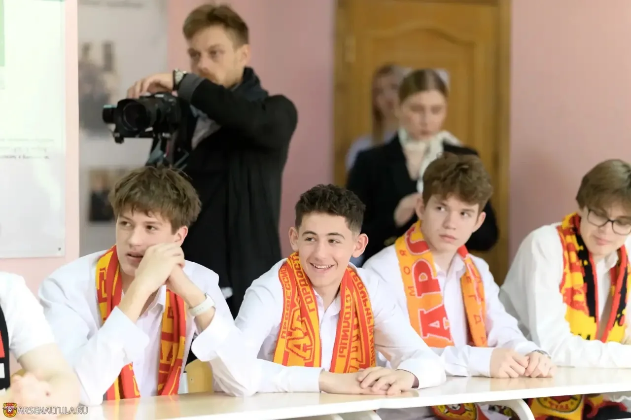 Строки гимна команды — «Футбольный праздник вновь настал, на поле вышел «Арсенал» — сегодня звучали в стенах тульской гимназии № 11. В гости к школьникам с мастер‑классом приехали игроки команды: Степан Обрывков, Кирилл Богданец и Милош Брнович.