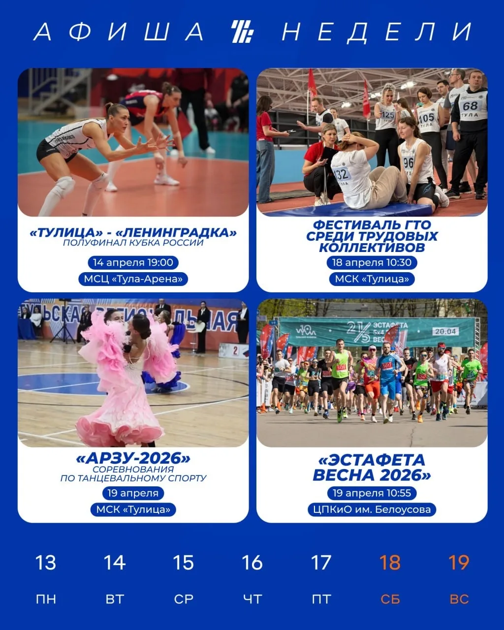 💫 18 апреля 10:30 в МСК «Тулица» фестиваль ГТО среди трудовых коллективов