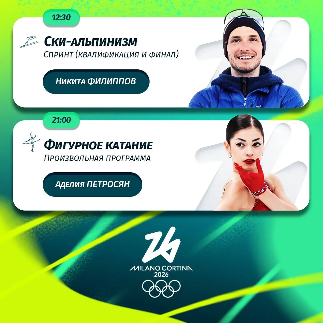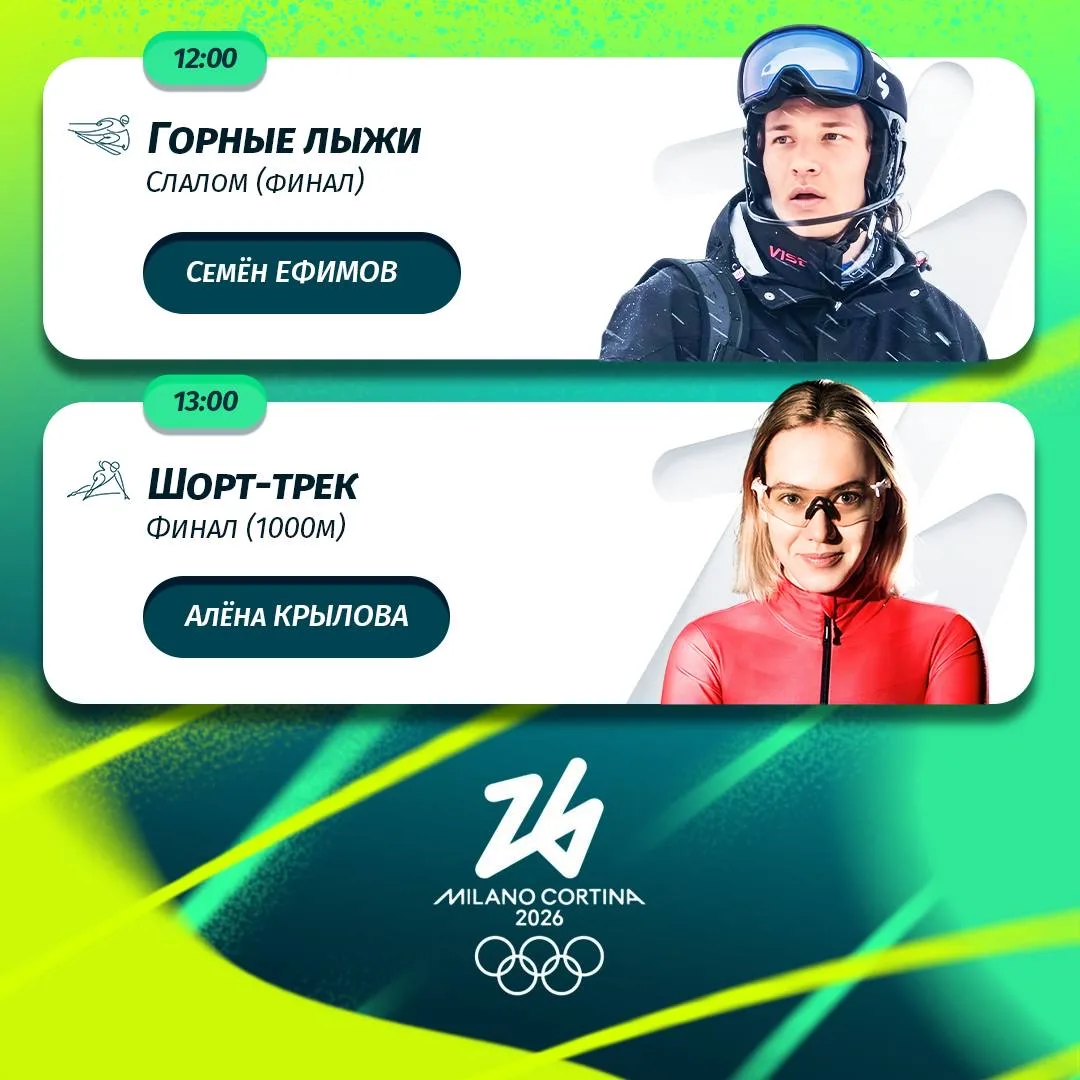 Сегодня смотрим горные лыжи и шорт-трек! Лови расписание, чтобы не пропустить 😉