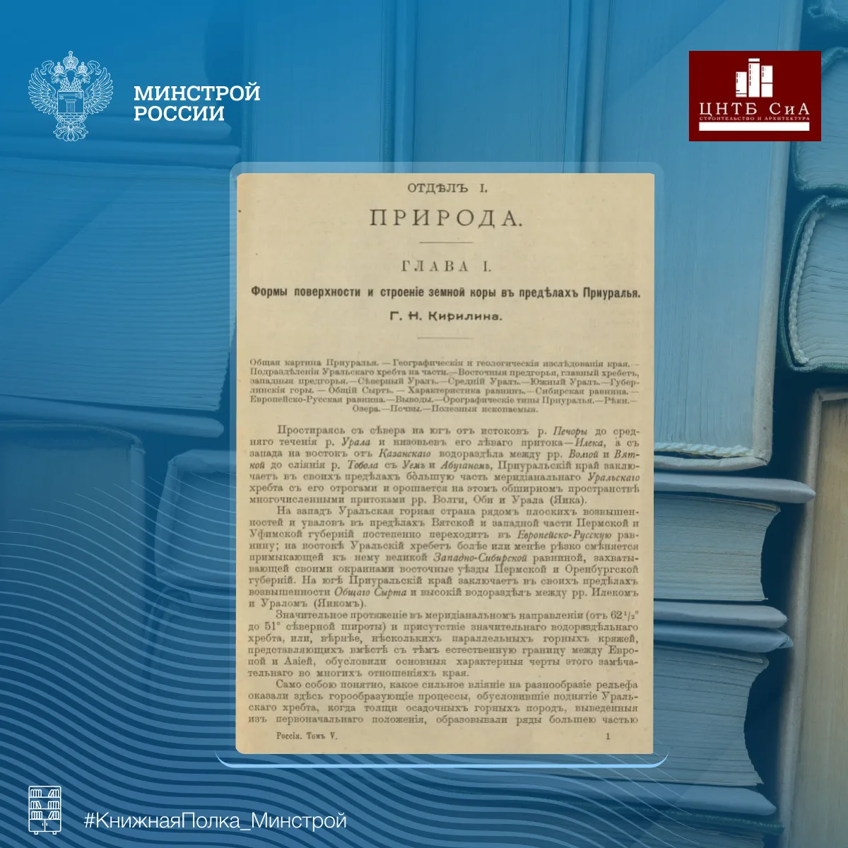 Сегодня в нашей рубрике #КнижнаяПолка_Минстрой - увлекательное издание «Россия. Полное географическое описание нашего отечества. Т. 5. Урал и Приуралье»