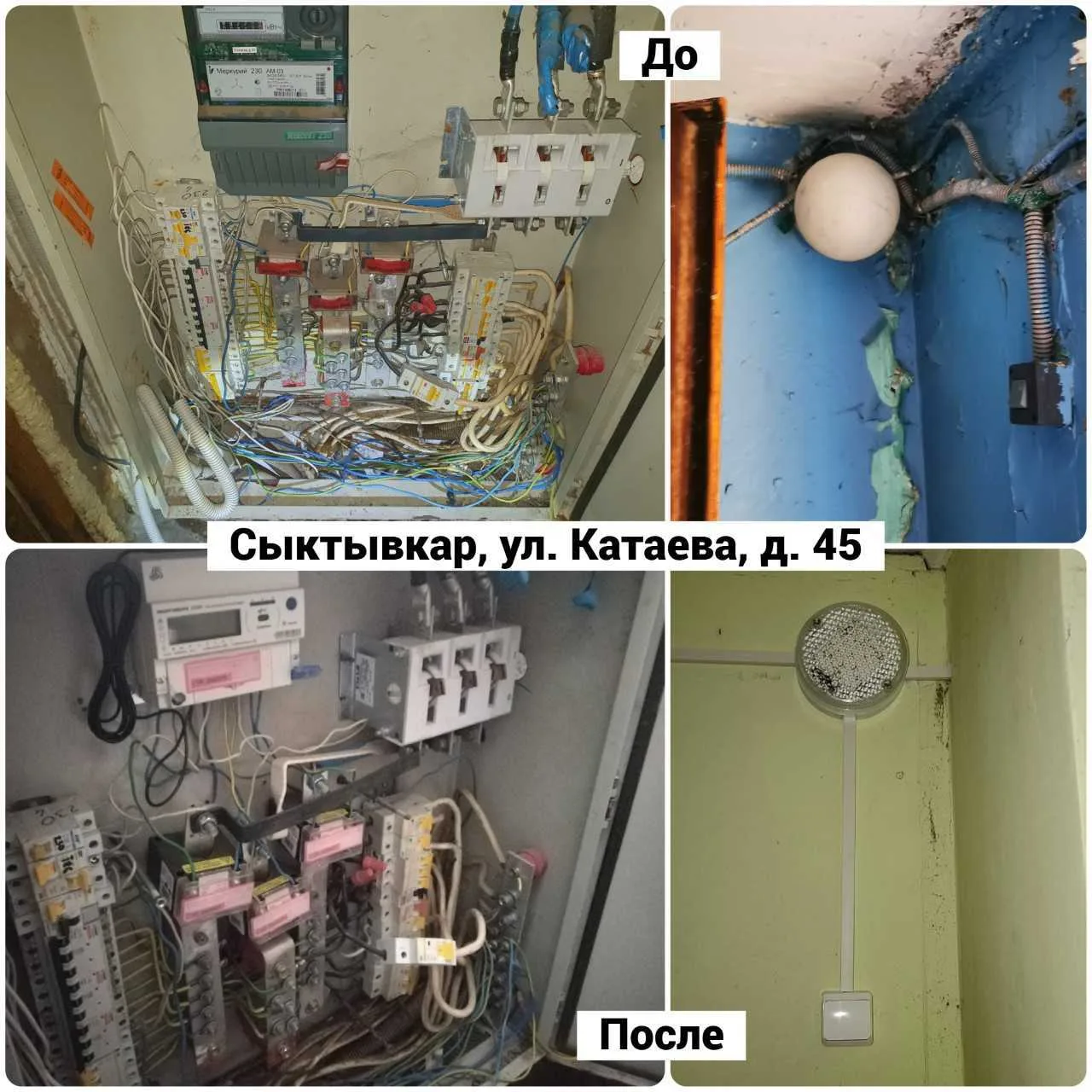 ✅️По улице Катаева в доме 45 приняты работы по капитальному ремонту внутридомовой инженерной системы электроснабжения, выполненные подрядной организацией ООО «МИДИАЛ-ПОЛИМЕР». В рамках ремонта электроснабжения произведена замена этажных щитов, кабельных линий и светильников в МОП.