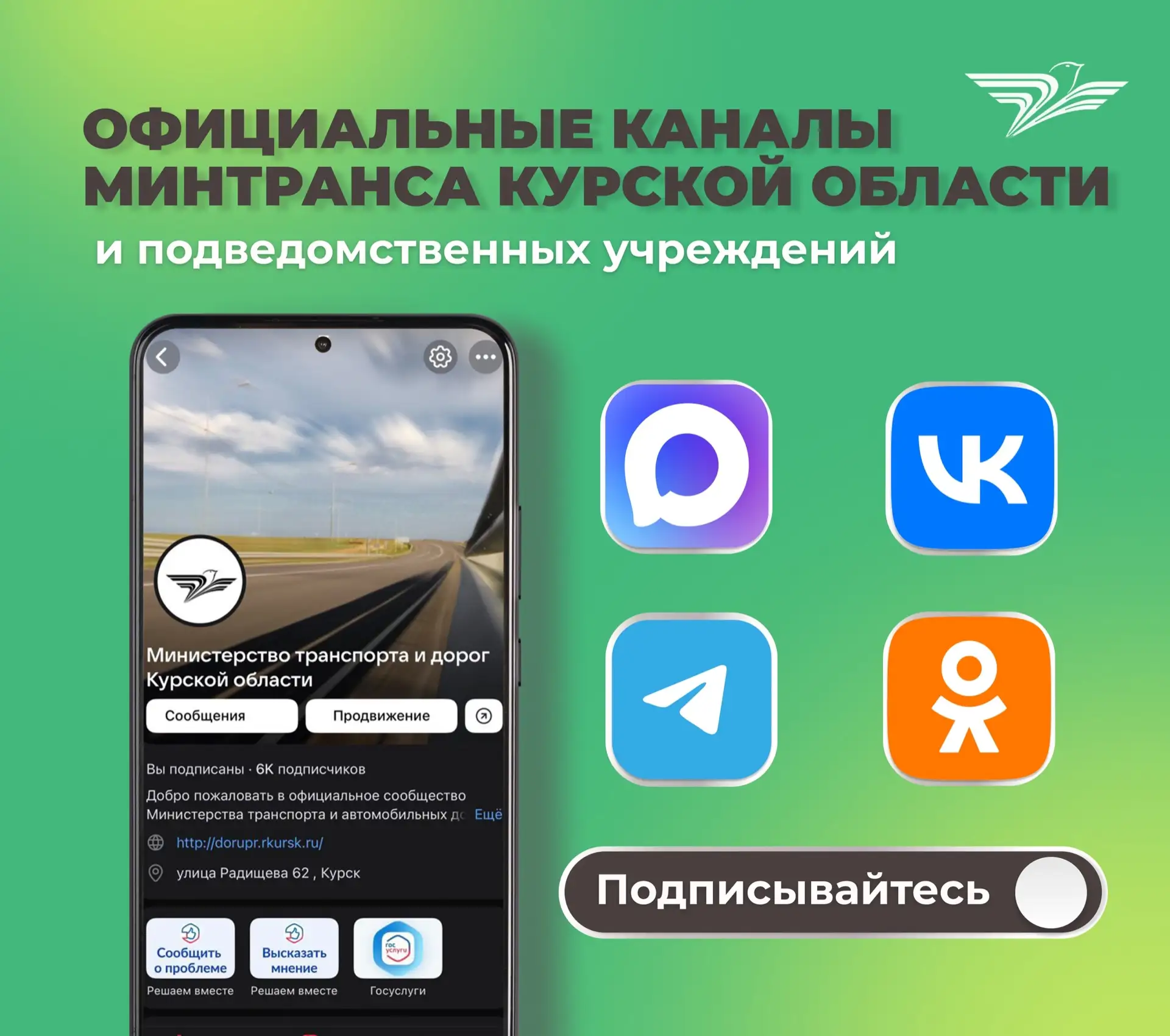 Минтранс в МАХ — max.ru/mintrans46