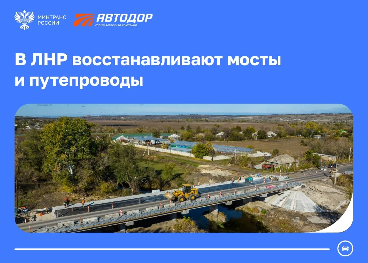 ▶️Автодор восстановит десять искусственных сооружений в ЛНР в 2026 году.