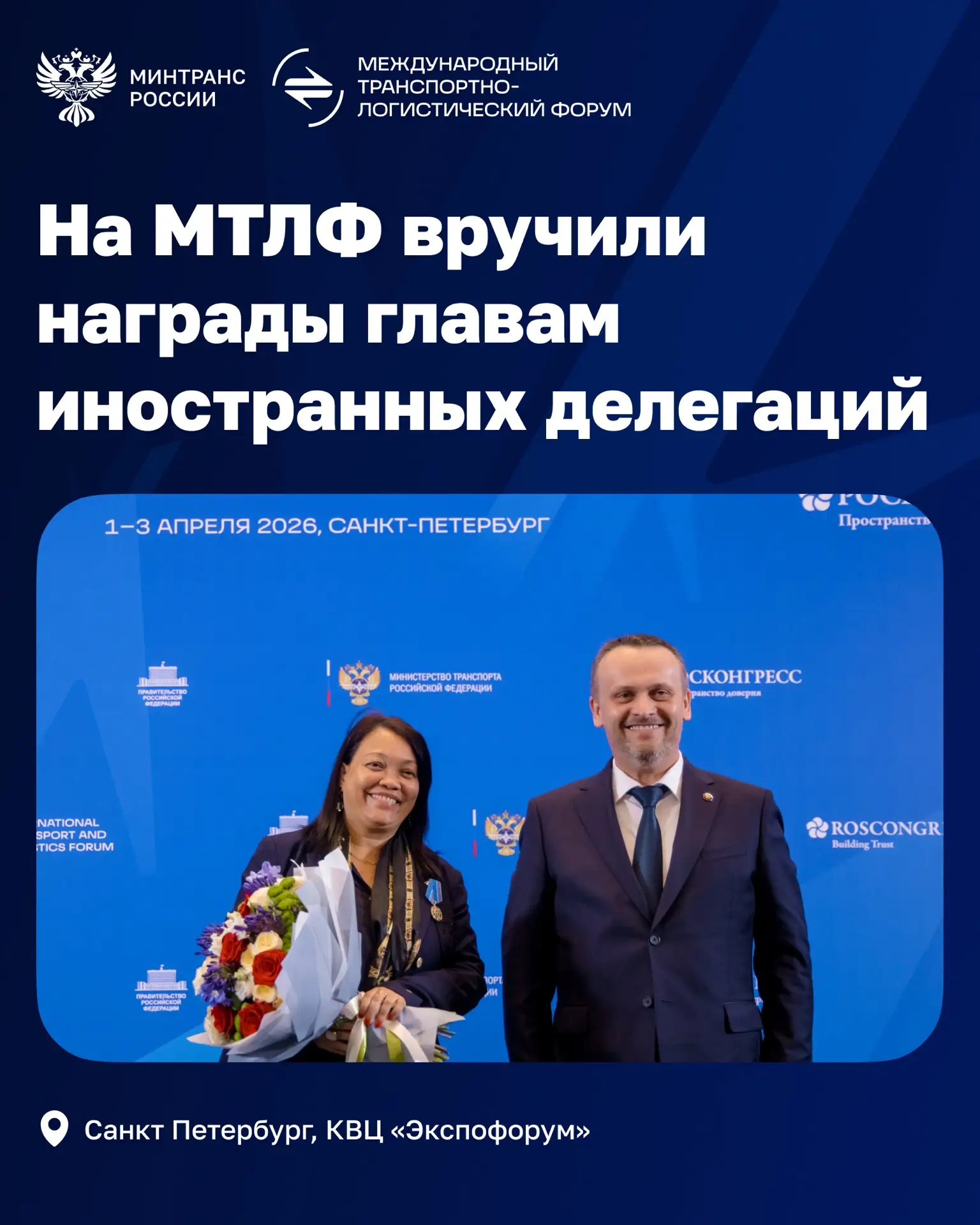 Торжественная церемония прошла в Санкт-Петербурге на площадке МТЛФ. Ведомственными наградами Минтранса отмечены партнеры из 17 государств.