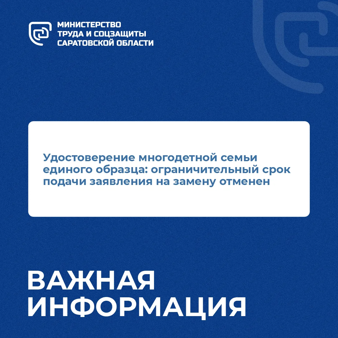 ❗️В Саратовской области изменился срок выдачи удостоверений многодетной семьи нового образца.