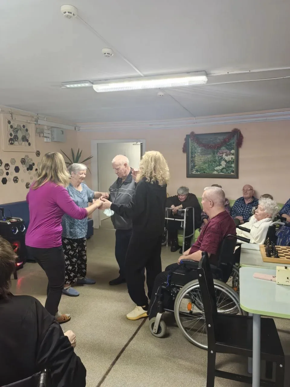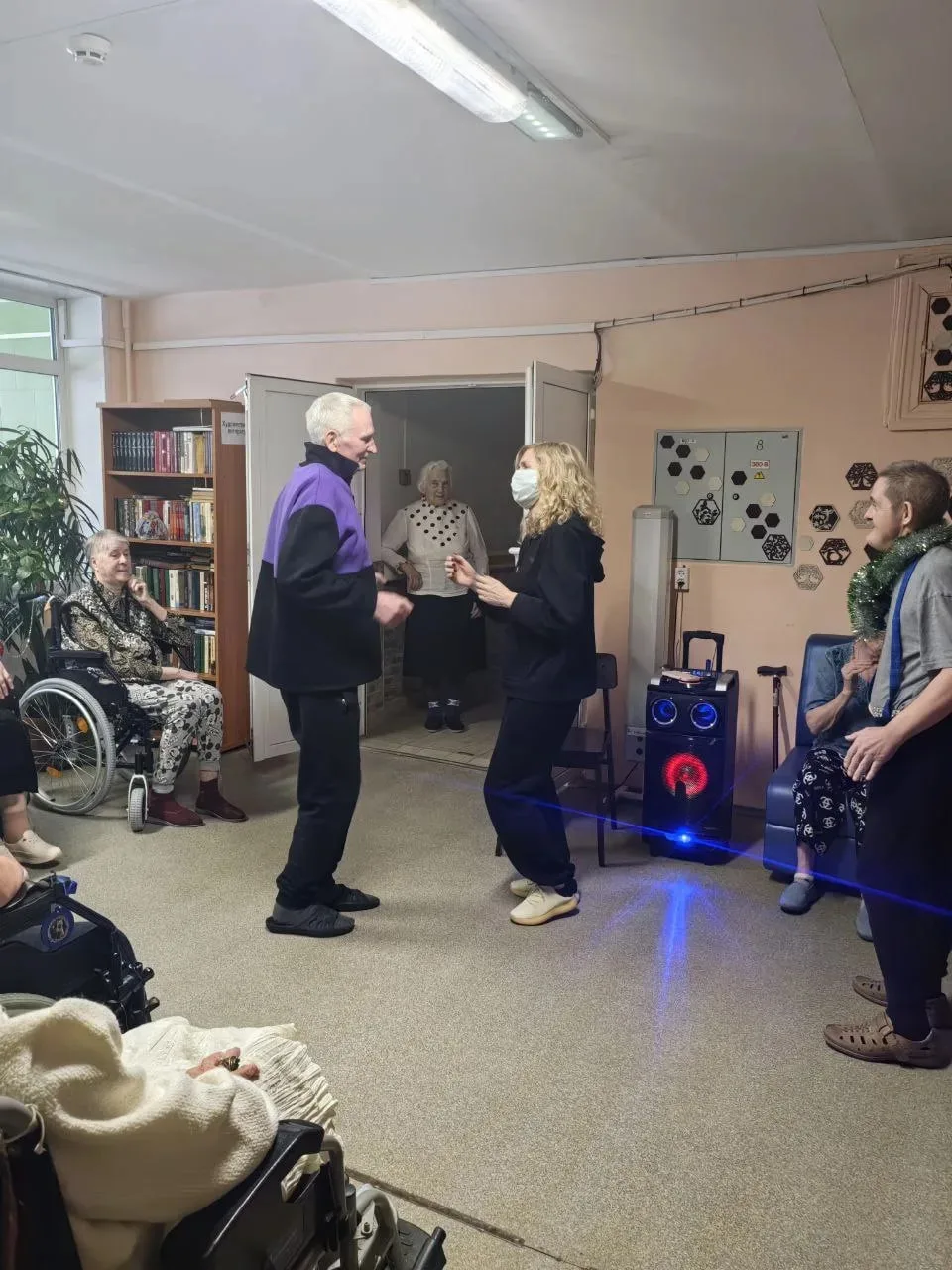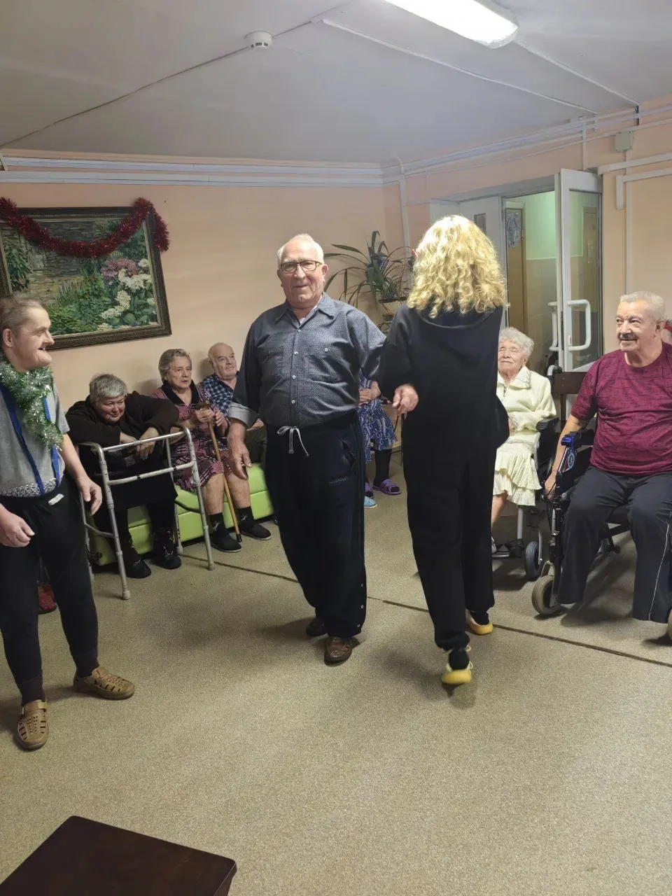 Под любимые хиты подопечные дома социального обслуживания устроили праздничные танцы — пели, двигались от души и заряжались настроением.