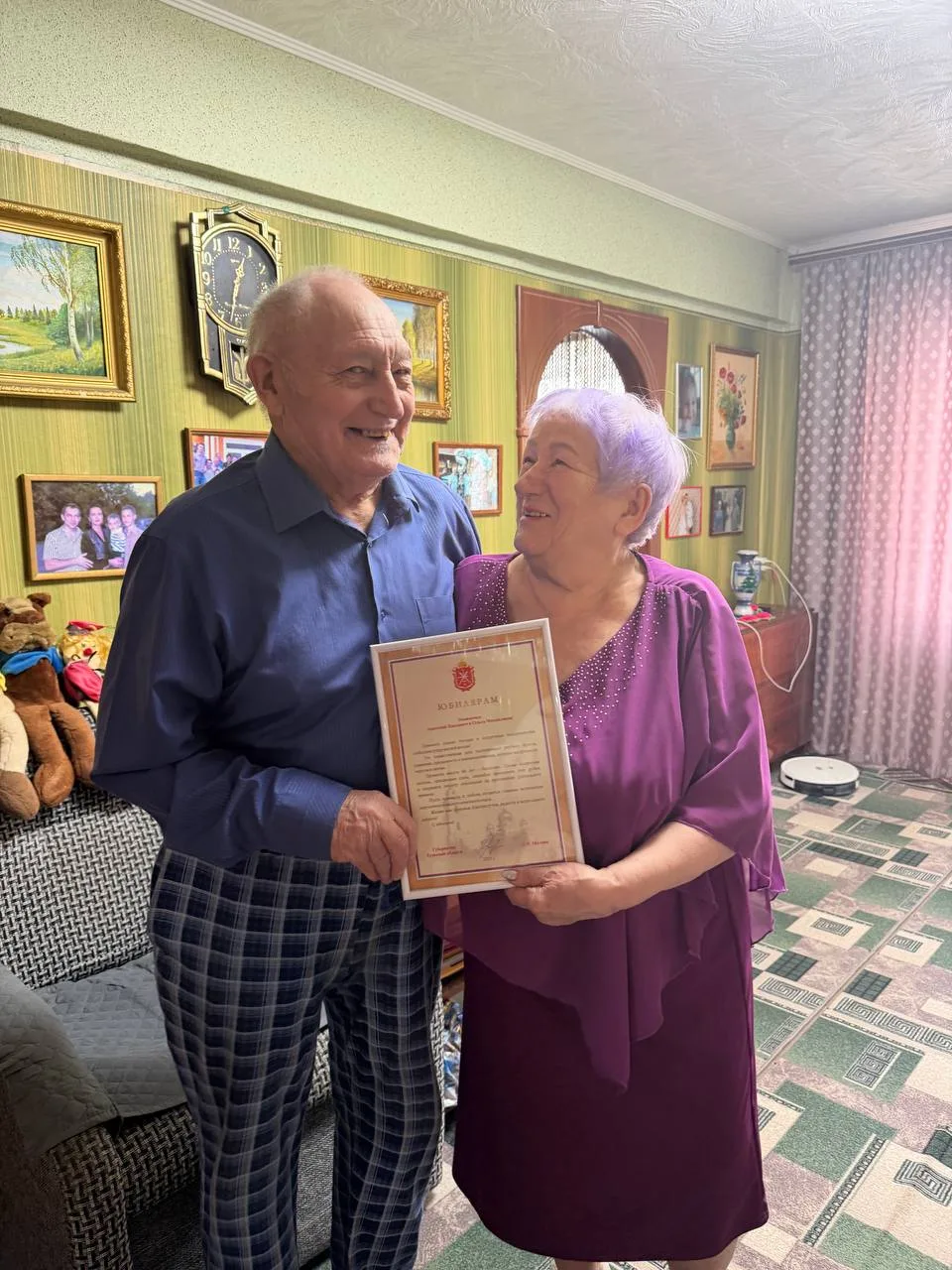 31 декабря начальник Новомосковского отдела ЗАГС Ольга Жданова поздравила Анатолия Павловича и Ольгу Михайловну Дергачёвых с юбилеем семейной жизни — 60-летием брака.