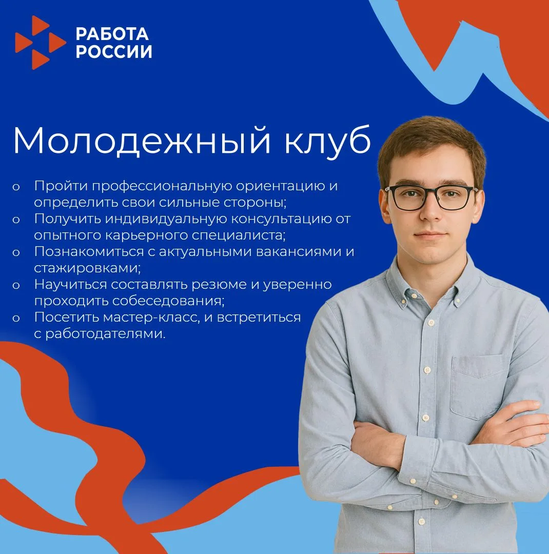 Если вы студент или выпускник и думаете о первом месте работы, в кадровых центрах «Работа России» работают молодёжные клубы. Здесь помогают разобраться в профессиях, прокачать полезные навыки и подобрать вакансию или стажировку.
