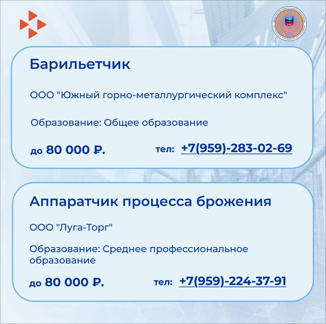 Предлагаем ознакомиться с некоторыми вакансиями в наших карточках.