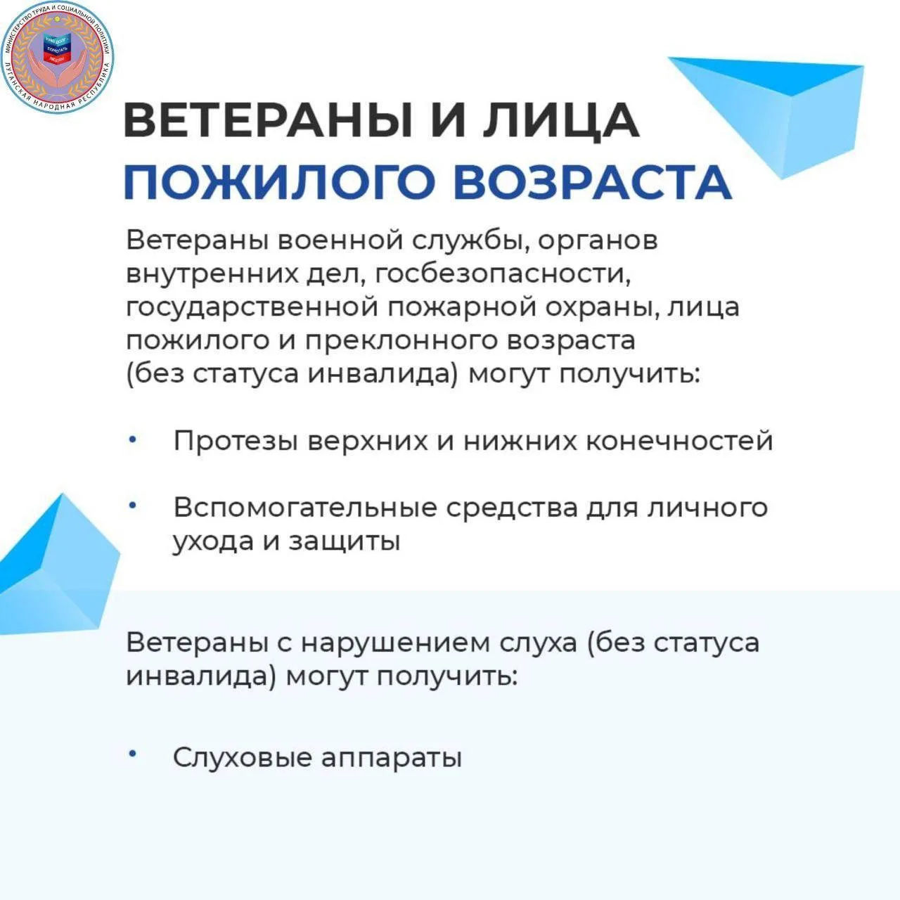 Министерство труда и социальной политики ЛНР напоминает о том, что в республике продолжается обеспечение граждан техническими средствами реабилитации (ТСР), которые входят в региональный перечень.