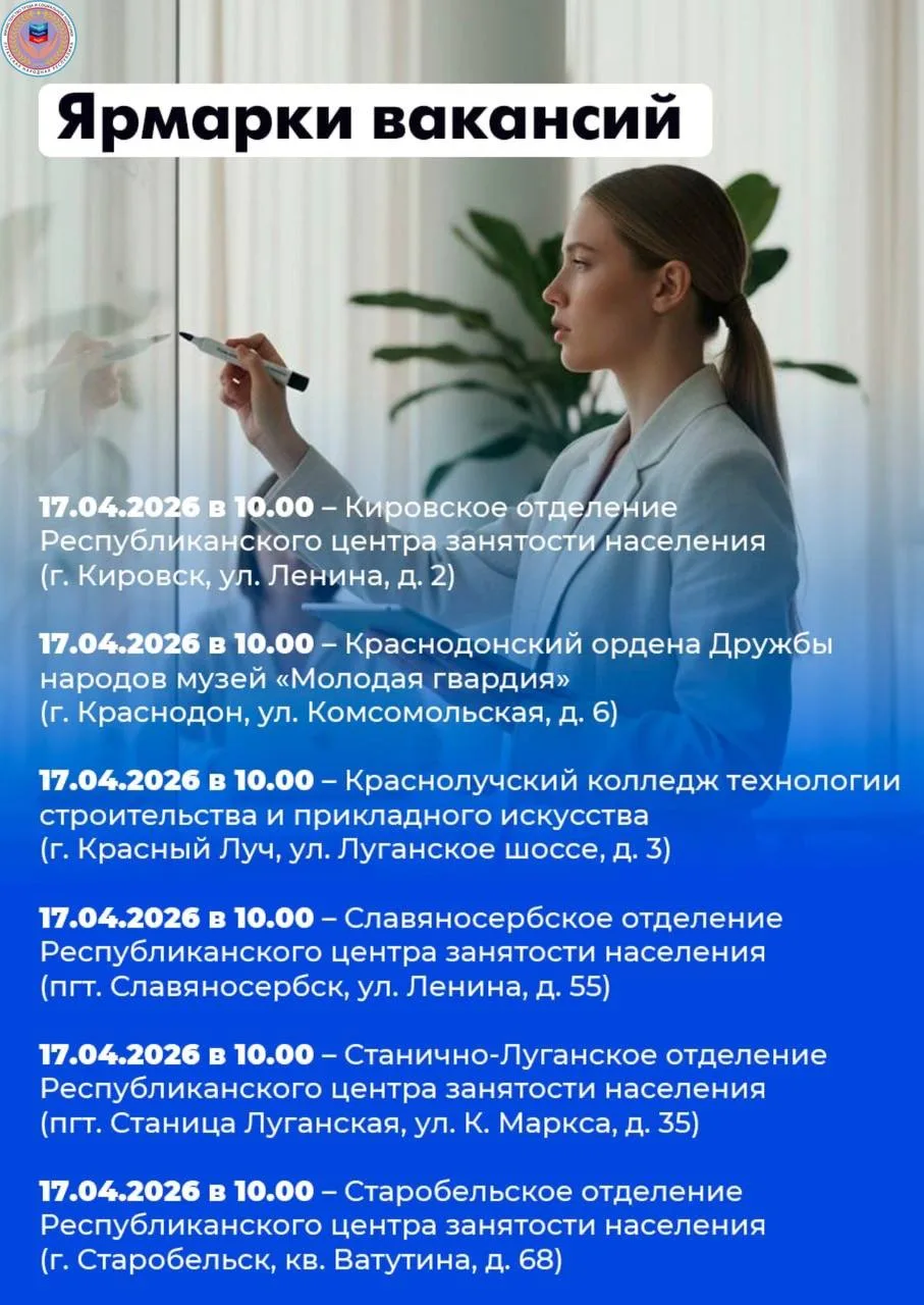 График проведения ярмарок вакансий и учебных рабочих мест на апрель 2026 года смотрите в карточках.