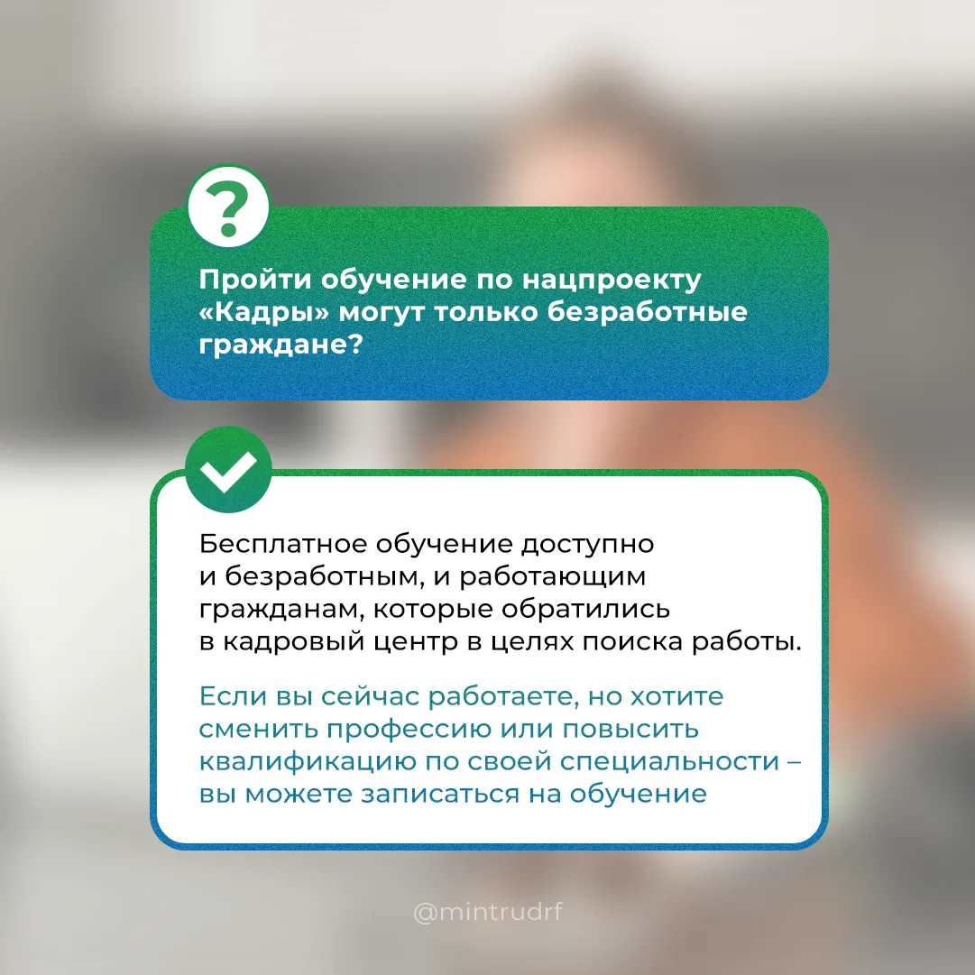 🔷 Бойцы и их близкие осваивают новые профессии по нацпроекту «Кадры», чтобы продолжить профессиональную деятельность и найти работу