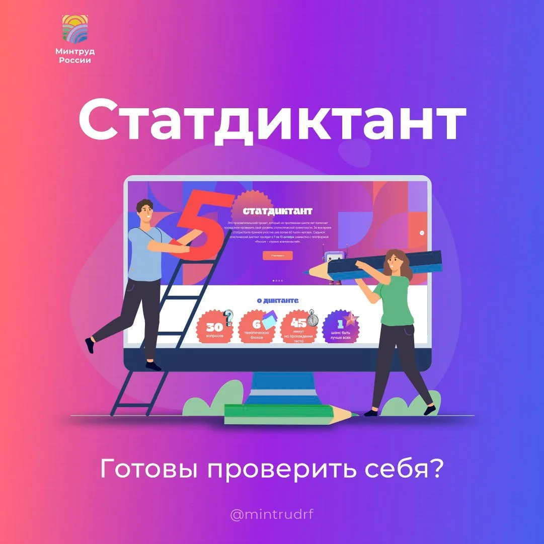 Зарегистрироваться и пройти диктант по ссылке 👉🏻sd.rosstat.gov.ru/