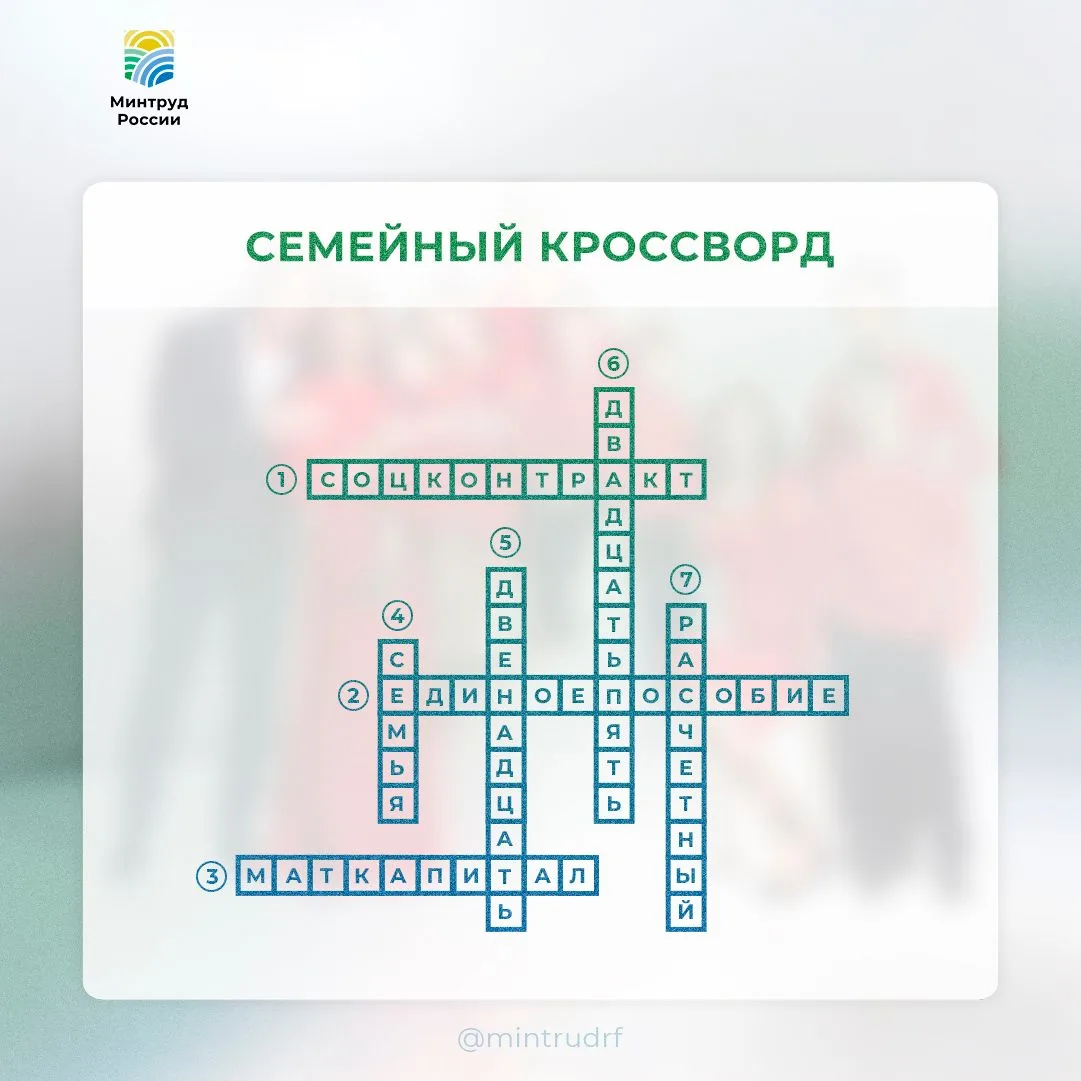 В карточке спрятано 7 слов о мерах поддержки семей с детьми. Сможете найти их все? 😉