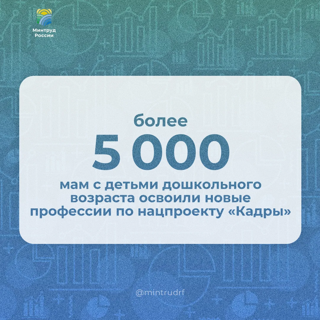 🔵 Более 5 тыс. матерей с детьми дошкольного возраста освоили новые профессии по нацпроекту «Кадры»