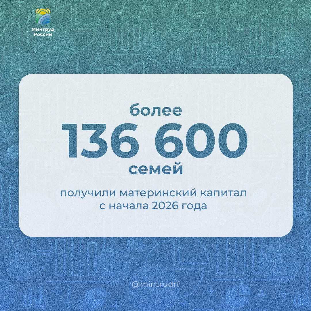 🔵 Более 136 600 семей получили материнский капитал с начала 2026 года