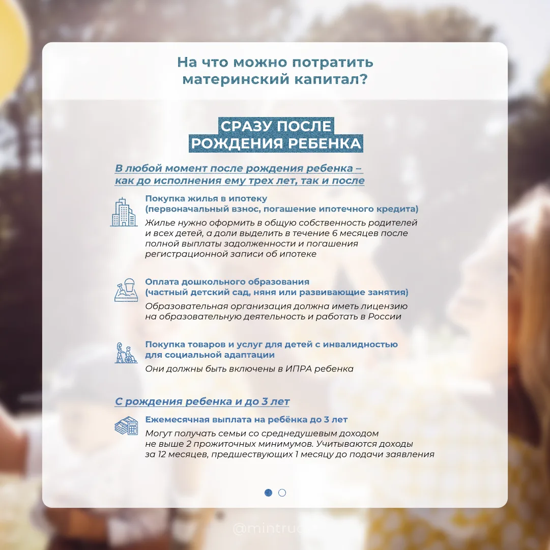 👶 На самых маленьких: дошкольное образование (ясли, частный детский сад) можно оплатить сразу после рождения ребёнка и получения сертификата.