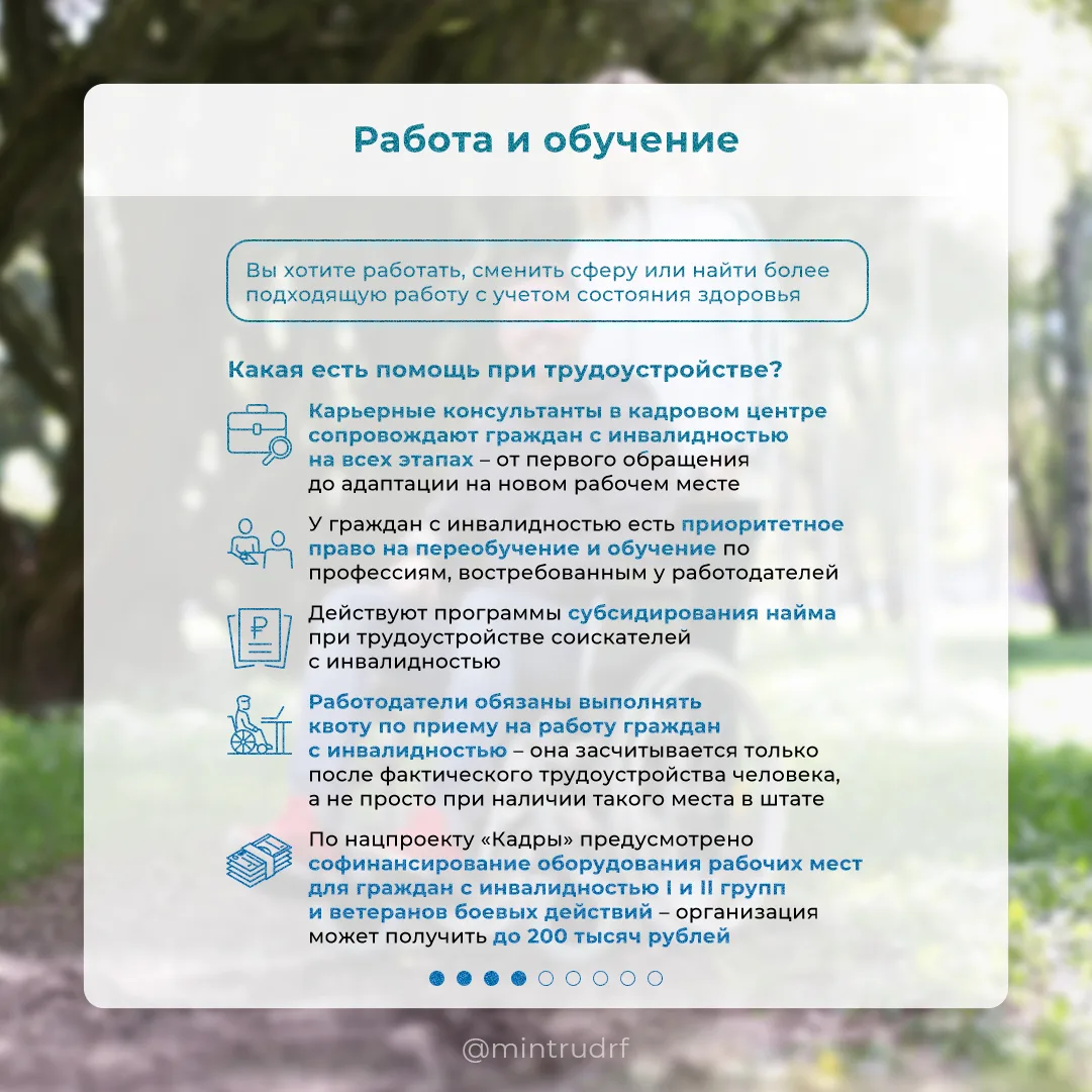 Подробнее о мерах поддержки граждан с инвалидностью и их семей – в наших карточках ⤴️⠀