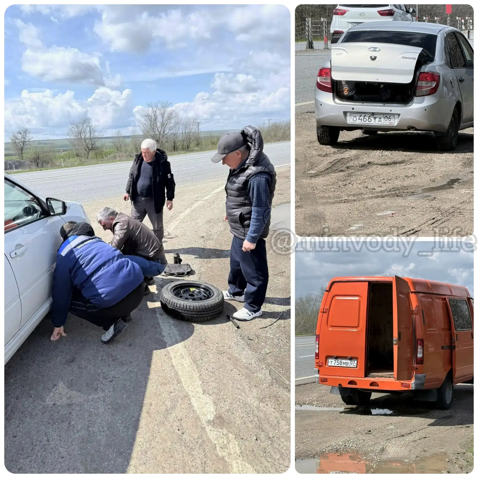 «Едем в Ставрополь, проехали Ульяновку, девочки в машине, без мужчин... Лопается колесо, делаем аварийную остановку, пытаемся самостоятельно решить проблему...