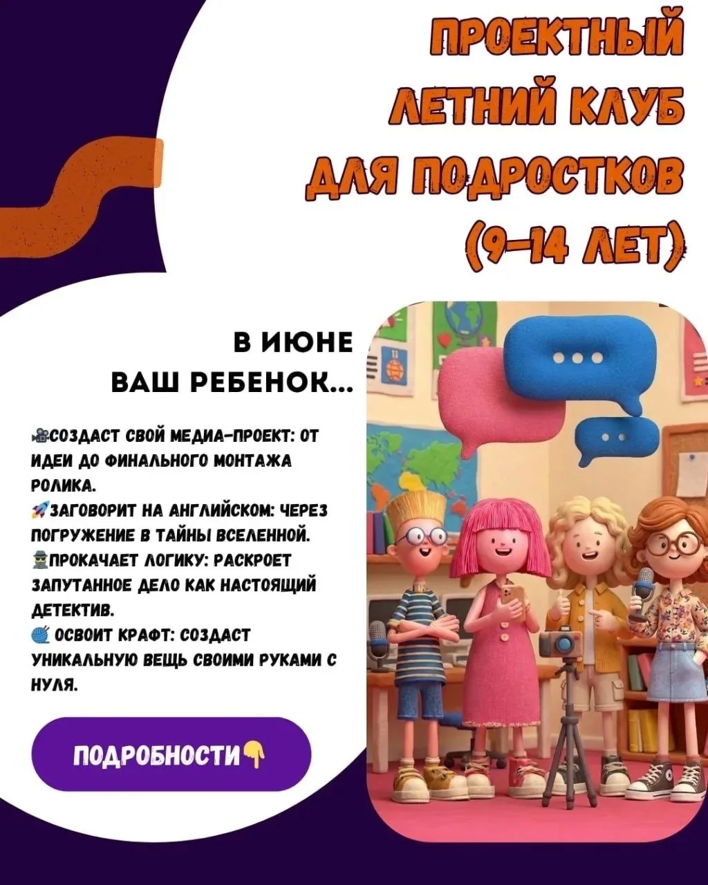 🔹Пишите нам: +7(928)325-53-83 Сообщение: «Проектный лагерь + возраст ребенка» — и мы пришлем вам презентацию программы.