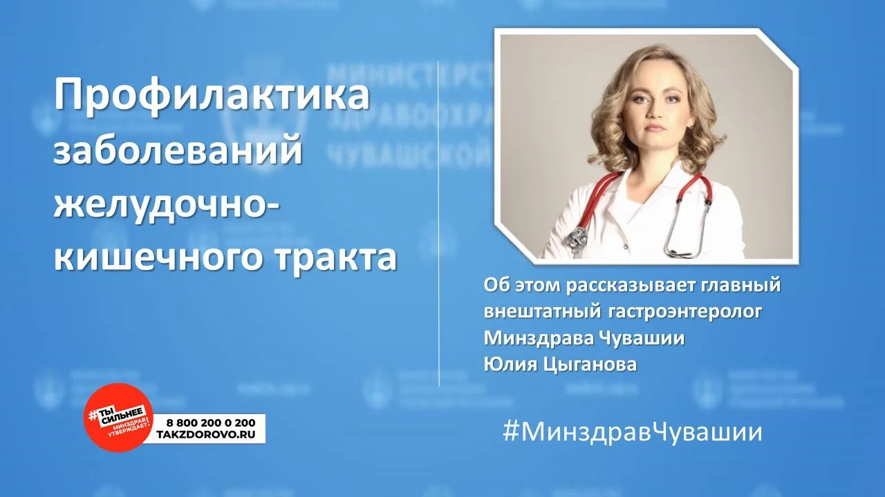 С 24 по 30 ноября проходит неделя профилактики заболеваний желудочно-кишечного тракта. Об основных способах профилактики заболеваний ЖКТ рассказывает главный внештатный гастроэнтеролог Минздрава Чувашии Юлия Цыганова.