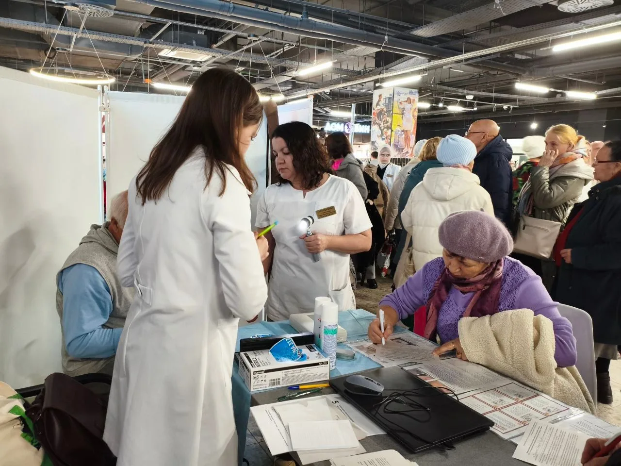 Бесплатное медицинское обследование, в т.ч. можно сдать экспресс-анализ крови на глюкозу, холестерин, сделать ЭКГ, проверить здоровье глаз, родинки и кожу, получить консультации врачей, а также пройти вакцинацию от гриппа.