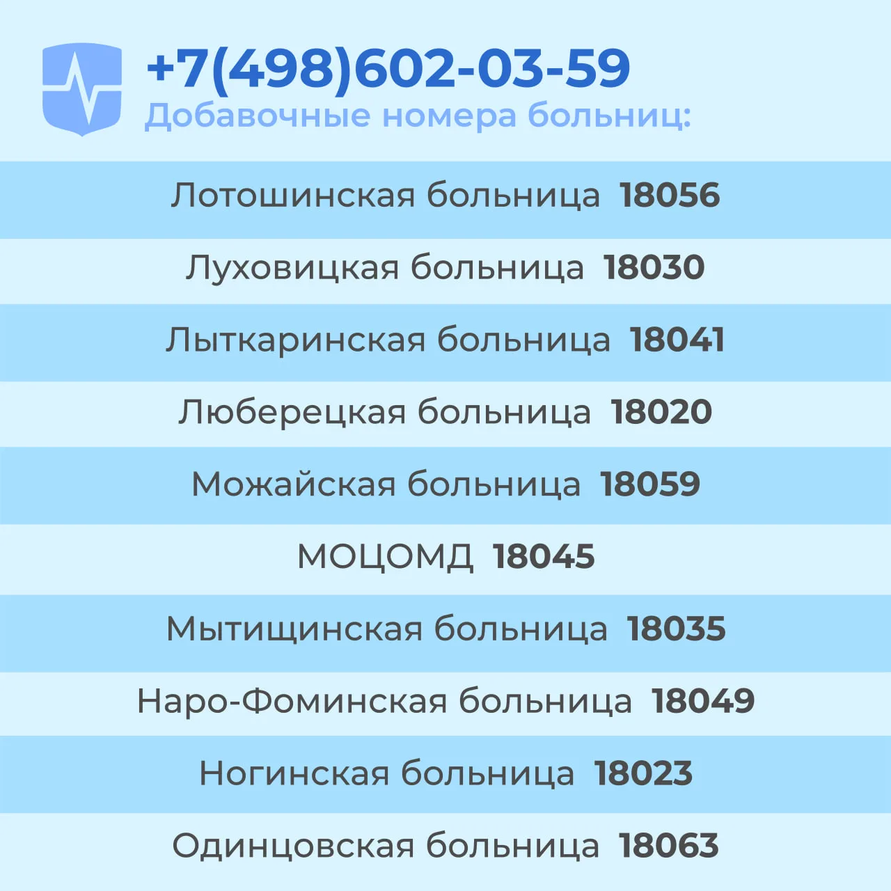 👍 Единый телефон «горячей линии» — 8(498)602-03-59 — позвонить можно с 9:00 до 18:00 в рабочие дни. После ответа оператора необходимо набрать добавочный номер медицинской организации.