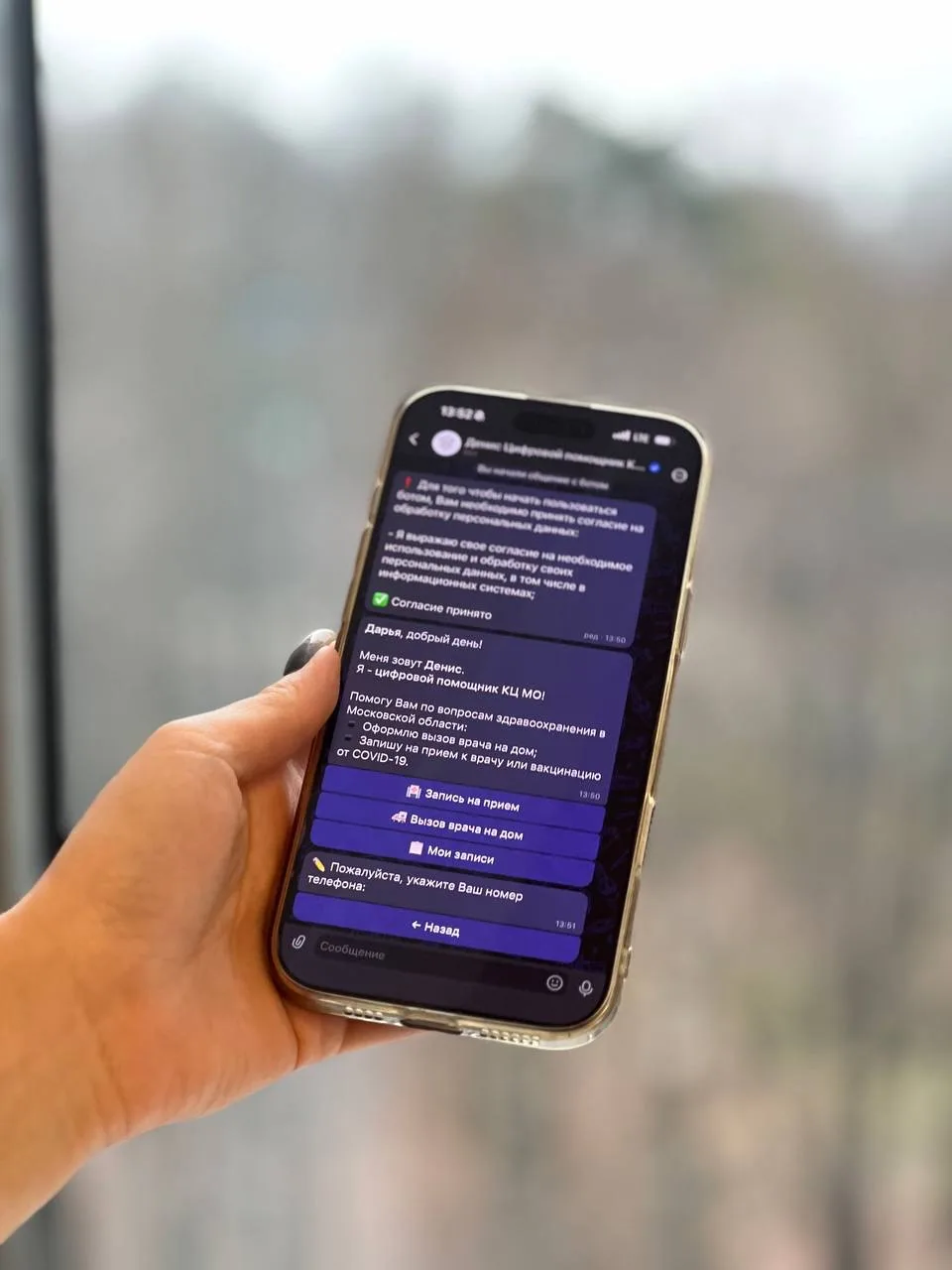 Важное условие: вы должны быть прикреплены к поликлинике в Московской области. Бот работает напрямую с системой ЕМИАС, а все записи сразу появляются в личном кабинете на региональном портале Госуслуг «Здоровье».