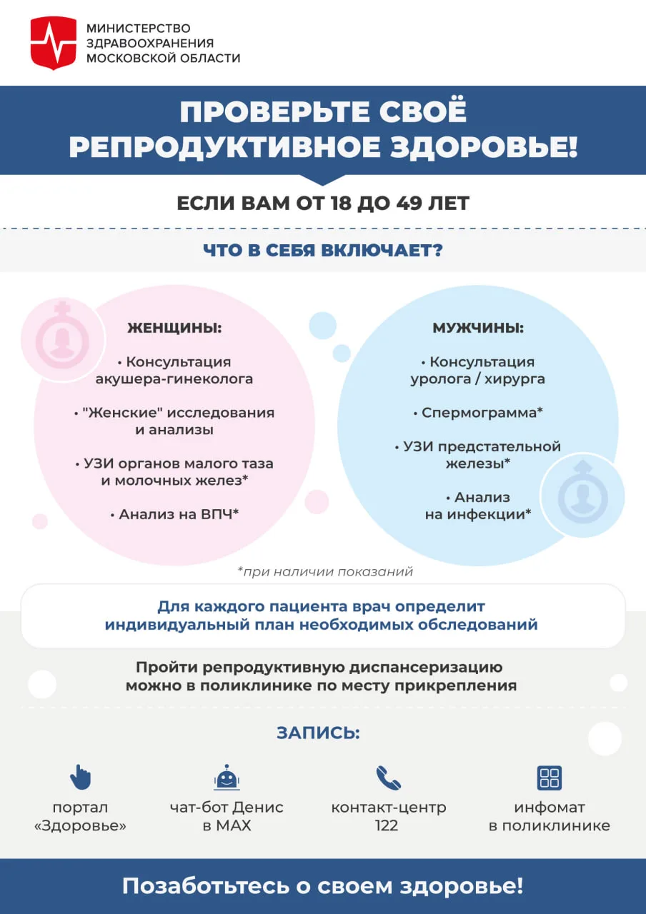 📈 Почти 200 000 жителей Подмосковья проверили репродуктивное здоровье.