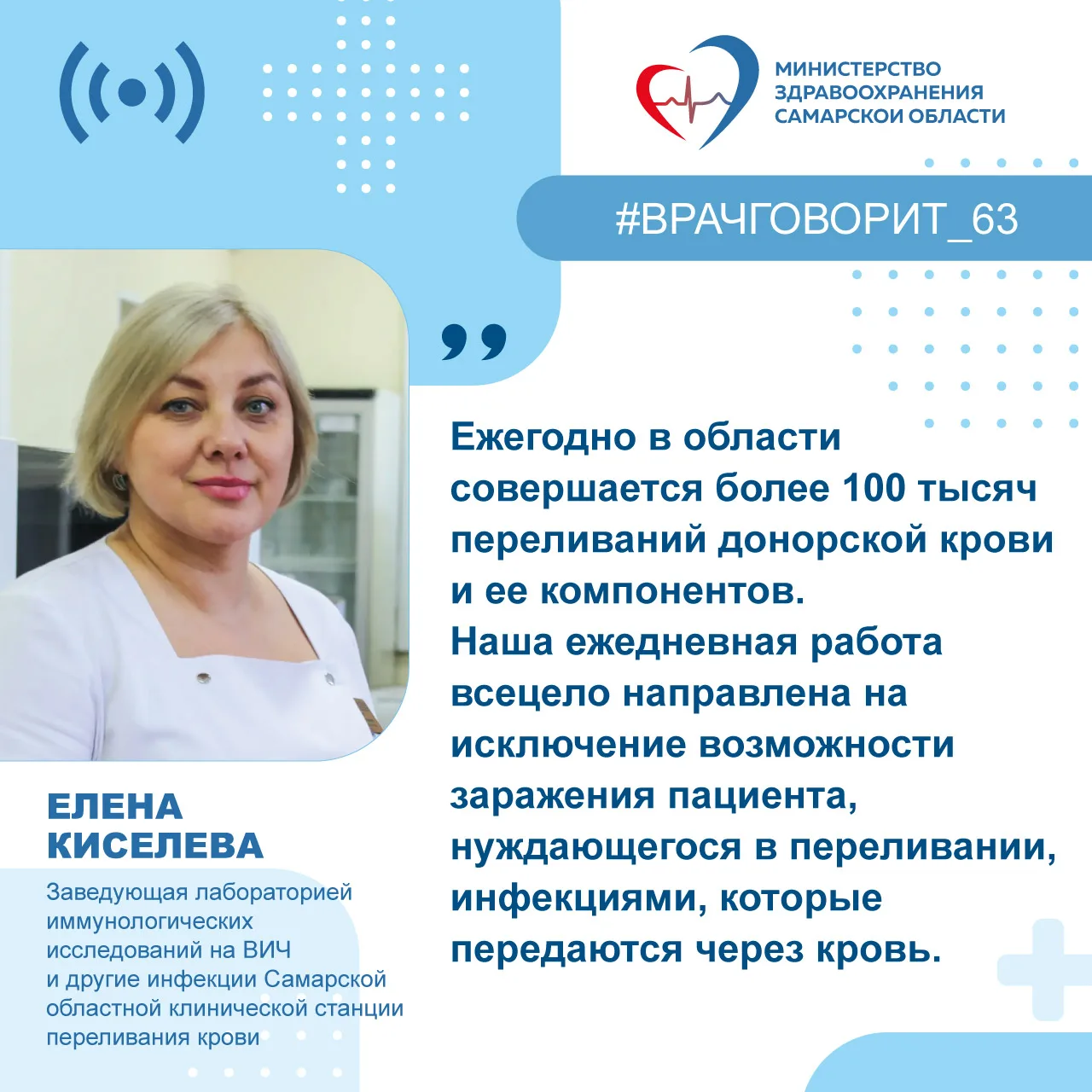 💉"Только за прошлый год пациентам Самарской области было проведено более 100 тысяч переливаний компонентов донорской крови, помощь получили свыше 25 тысяч человек" - отметила директор станции Елена Кудинова.