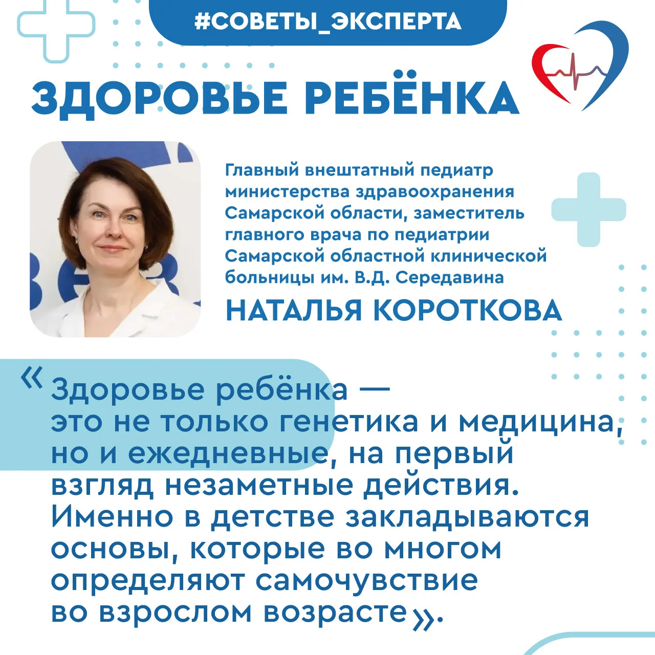 О том, какие простые, но важные привычки формируют здоровье ребёнка на годы вперёд, рассказывает главный внештатный специалист по педиатрии министерства здравоохранения Самарской области, заместитель главного врача по педиатрии Самарской областной клинической больницы им. В.Д.Середавина Наталья Короткова.