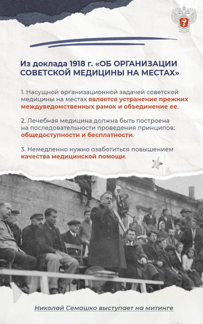 ❗️ Под руководством Николая Семашко разрозненные больницы, аптеки и фельдшерские пункты превратились в стройную общегосударственную структуру, которая стала образцом для многих стран мира.